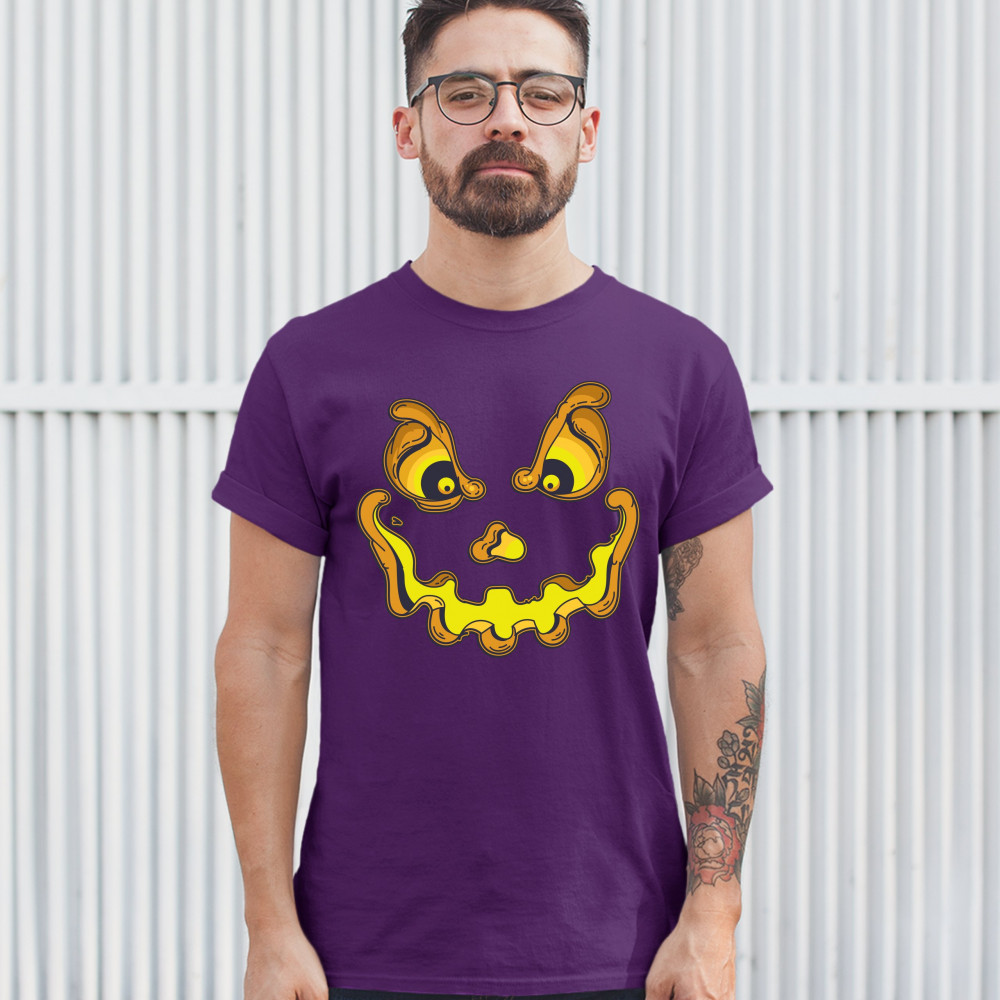 JACK-O-LANTERN PUMPKIN FACE t-shirt trick-or-treat halloween men's tee purple