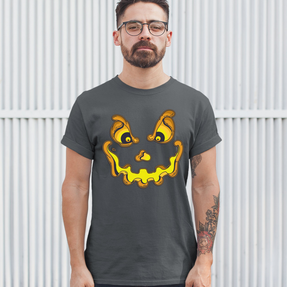 JACK-O-LANTERN PUMPKIN FACE t-shirt trick-or-treat halloween men's tee charcoal