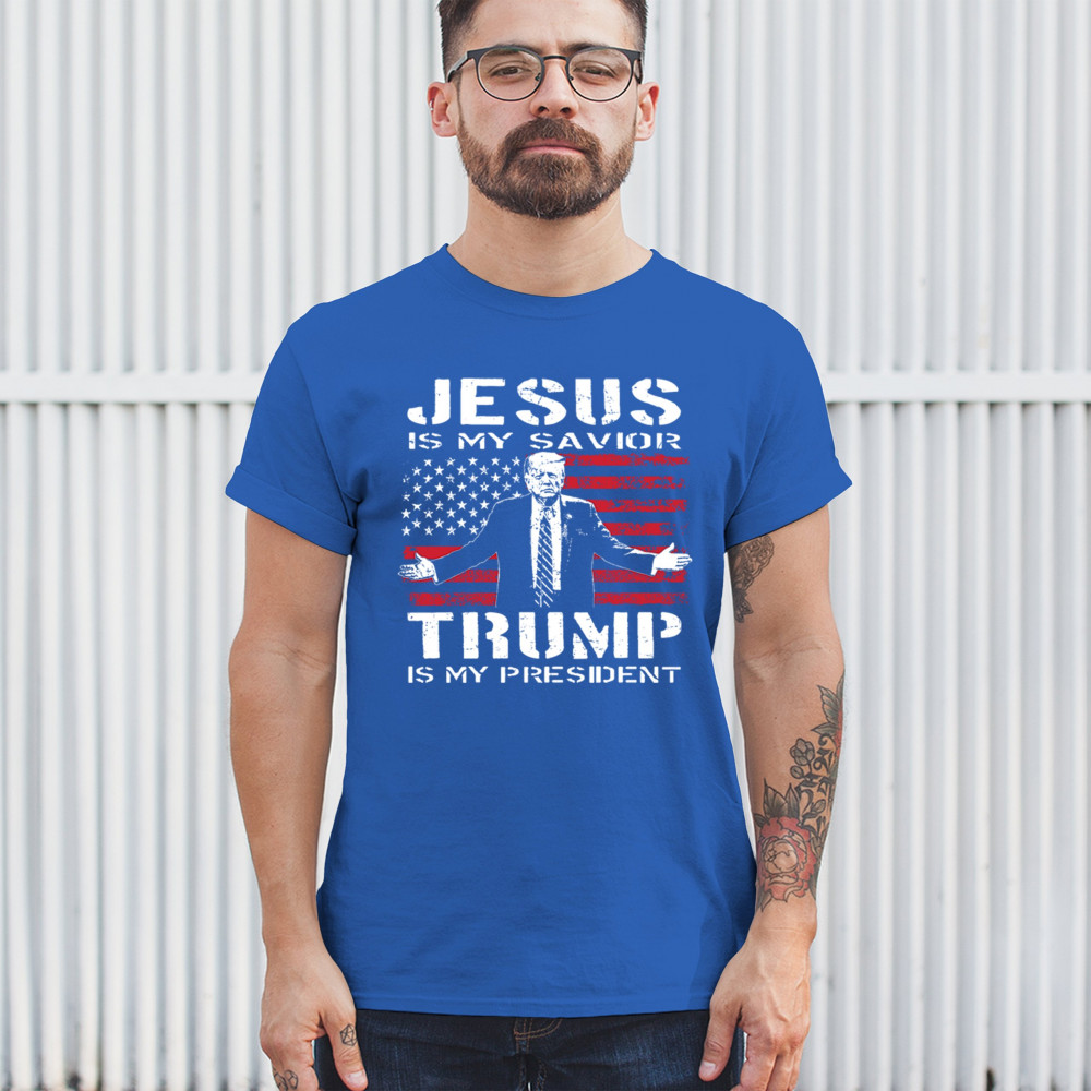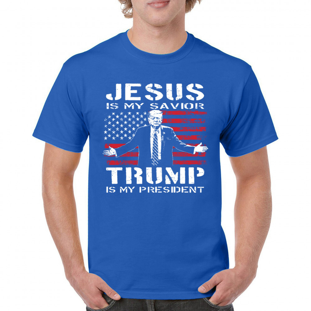 Express your unwavering faith and patriotism with the "Jesus is My Savior, Trump is My President" design. Perfect for conservatives, Republicans, and Trump supporters, this bold graphic combines spiritual devotion with a commitment to America First values. Celebrate the 47th President and the fight for freedom with this standout piece at rallies, events, or as a unique gift.