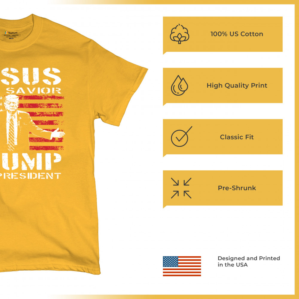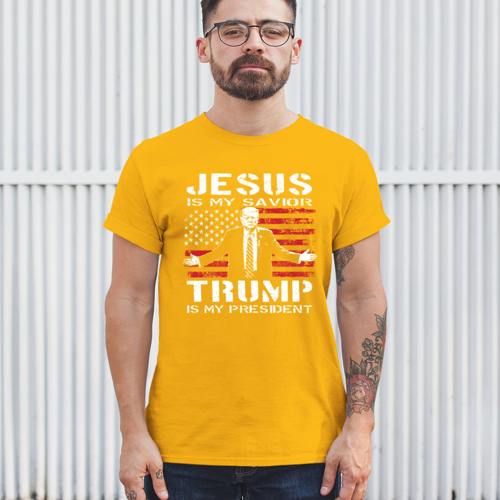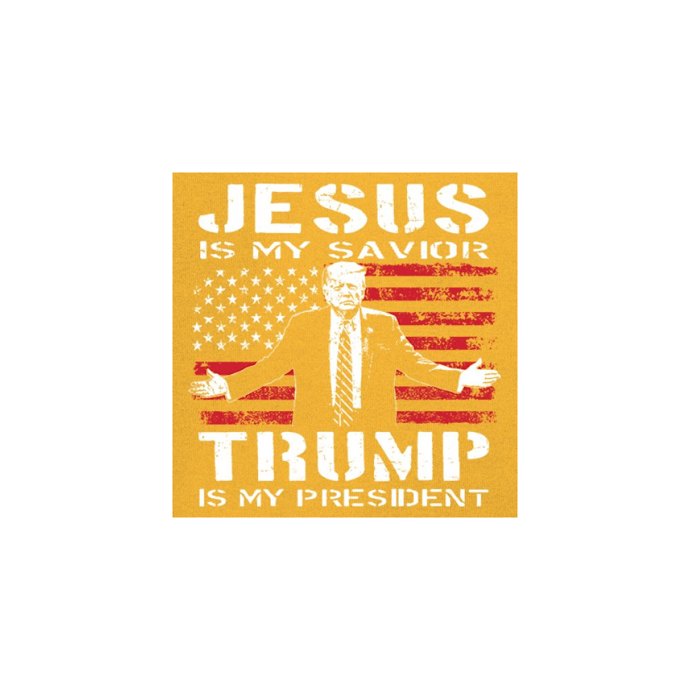 Express your unwavering faith and patriotism with the "Jesus is My Savior, Trump is My President" design. Perfect for conservatives, Republicans, and Trump supporters, this bold graphic combines spiritual devotion with a commitment to America First values. Celebrate the 47th President and the fight for freedom with this standout piece at rallies, events, or as a unique gift.