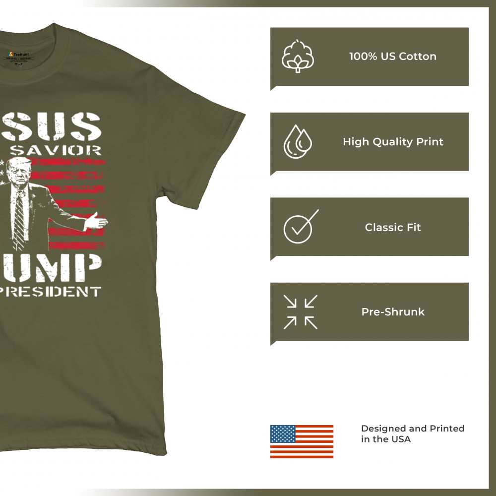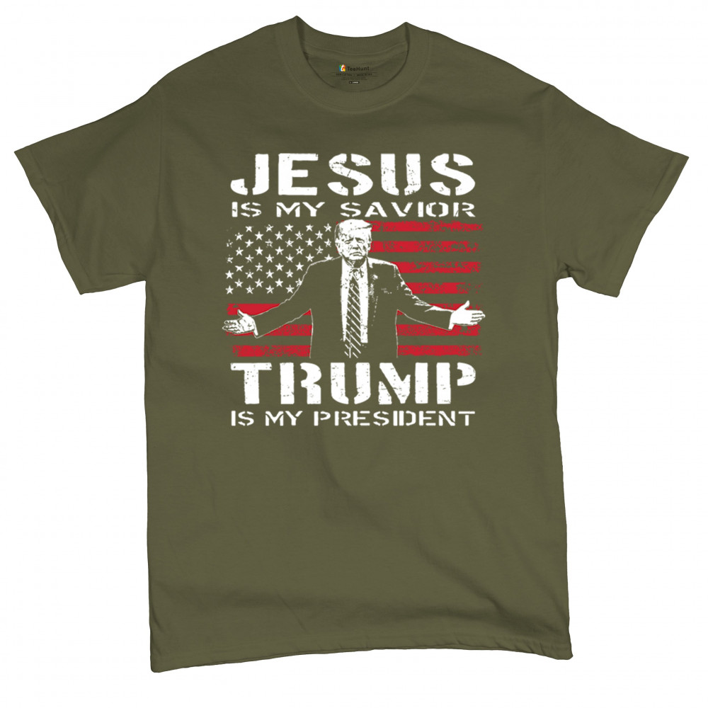 Express your unwavering faith and patriotism with the "Jesus is My Savior, Trump is My President" design. Perfect for conservatives, Republicans, and Trump supporters, this bold graphic combines spiritual devotion with a commitment to America First values. Celebrate the 47th President and the fight for freedom with this standout piece at rallies, events, or as a unique gift.