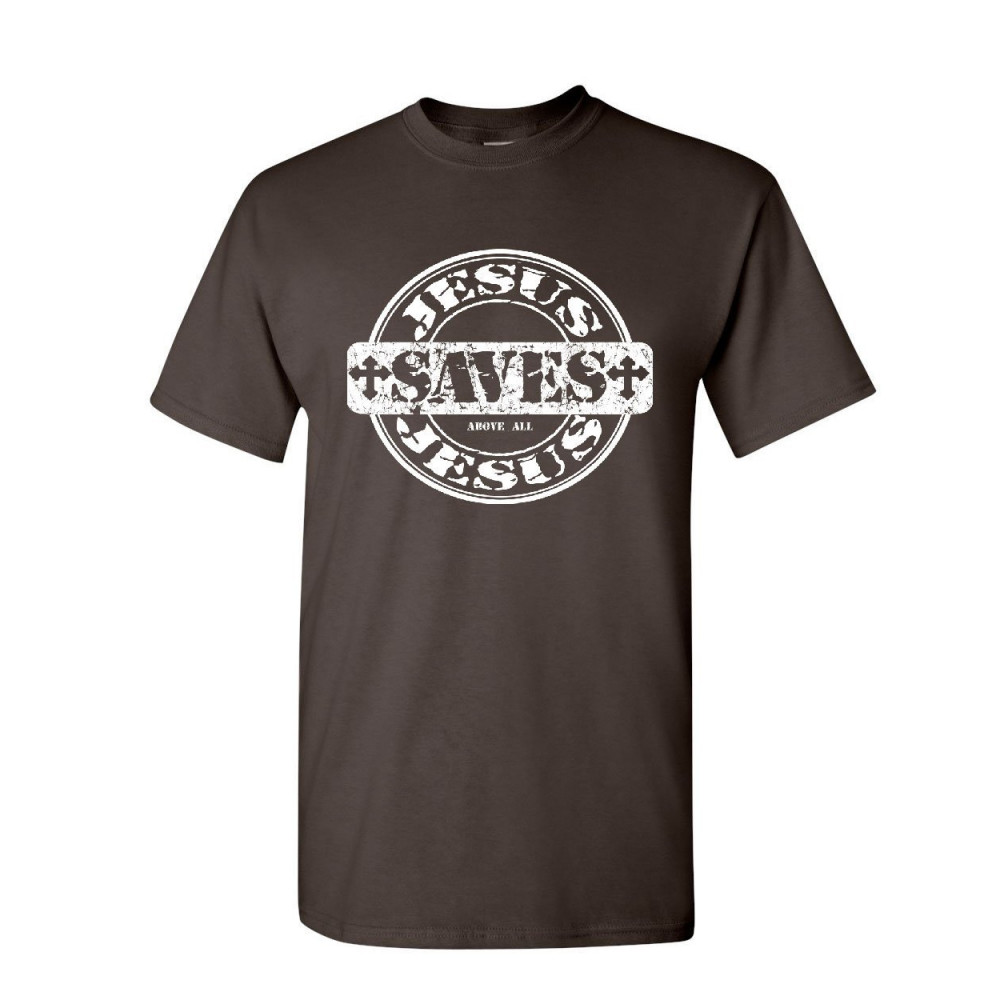 JESUS SAVES JESUS ABOVE ALL jesus saves t-shirt jesus christ above all christianity bible mens tee shirt brown