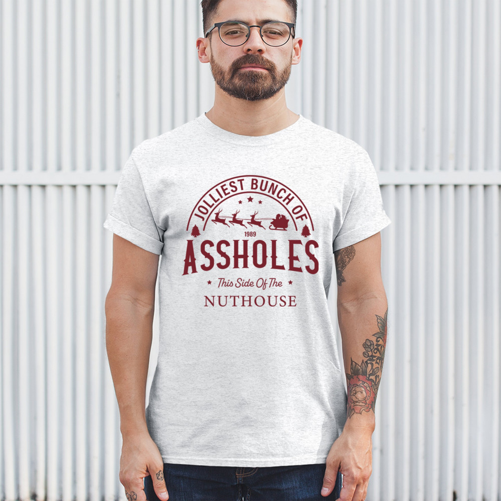 Celebrate the holidays with laughter in this “Jolliest Bunch of Ashols†design, mixing Santa Claus, reindeer, and sarcastic humor. Perfect for funny Christmas gatherings, Secret Santa parties, or holiday nights with friends, this festive gag gift adds Jolly AF energy, adult humor flair, and a touch of nuthouse cheer to your Christmas style.