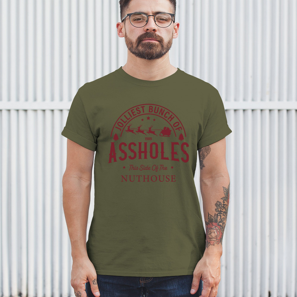 Celebrate the holidays with laughter in this “Jolliest Bunch of Ashols†design, mixing Santa Claus, reindeer, and sarcastic humor. Perfect for funny Christmas gatherings, Secret Santa parties, or holiday nights with friends, this festive gag gift adds Jolly AF energy, adult humor flair, and a touch of nuthouse cheer to your Christmas style.