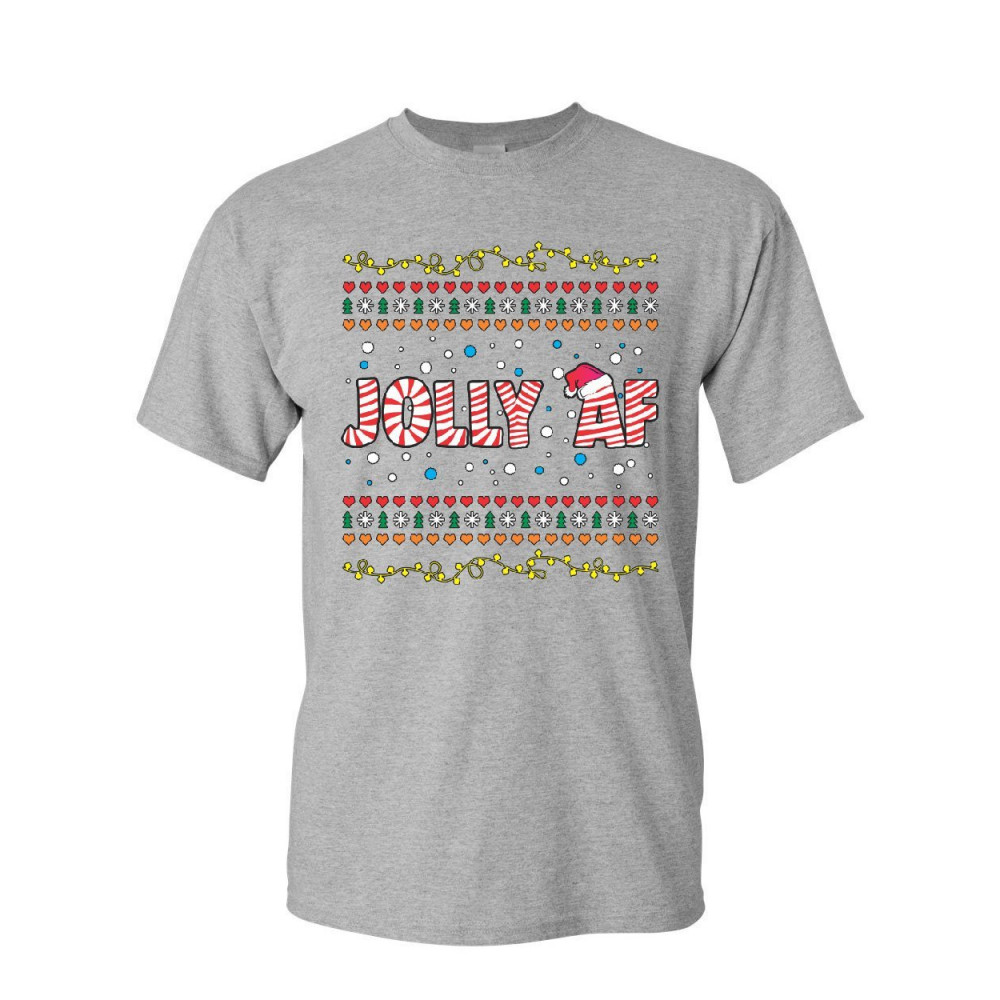 JOLLY AF t-shirt funny christmas eve holiday spirit xmas santa mens tee shirt sport gray