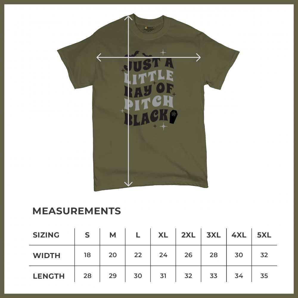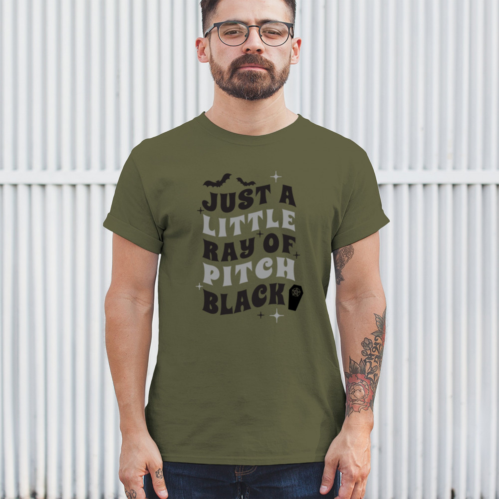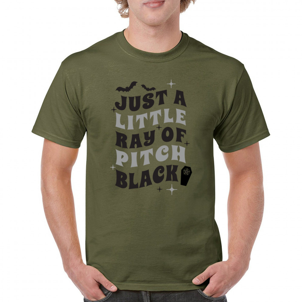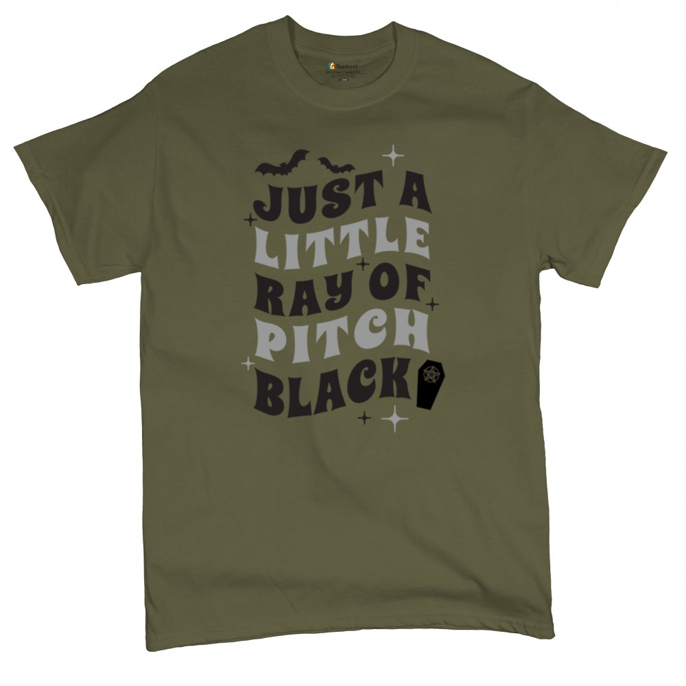 Showcase your dark humor with the "Just a Little Ray of Pitch Black" design—perfect for Halloween or everyday gothic style.