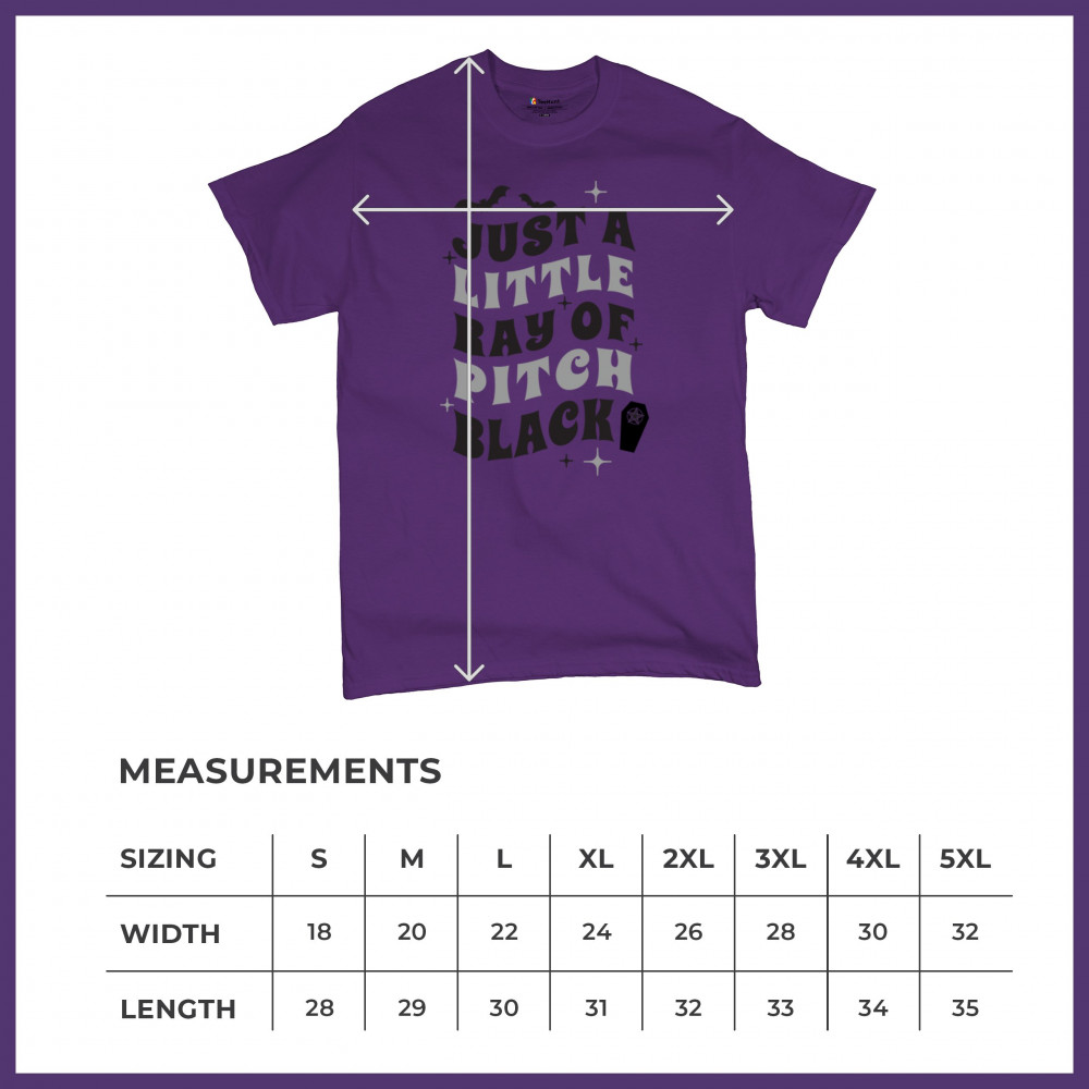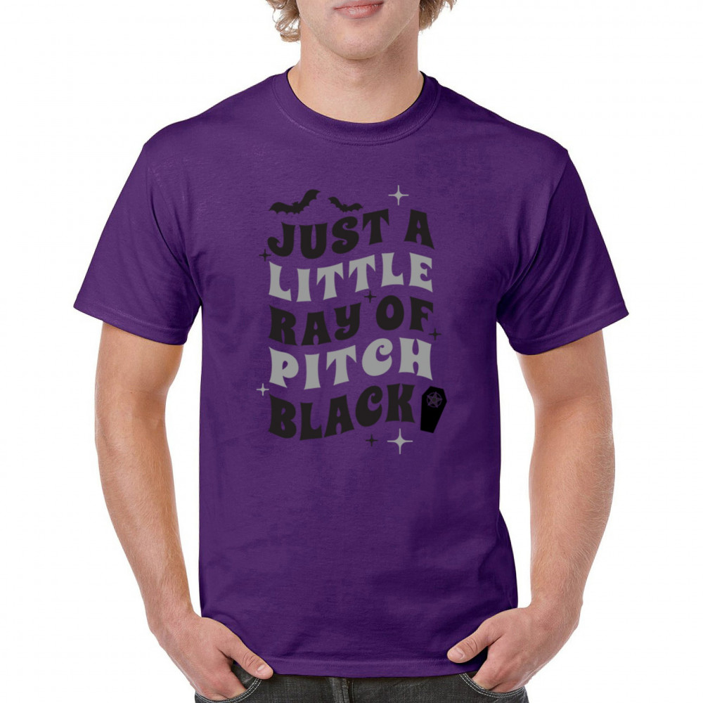 Showcase your dark humor with the "Just a Little Ray of Pitch Black" design—perfect for Halloween or everyday gothic style.