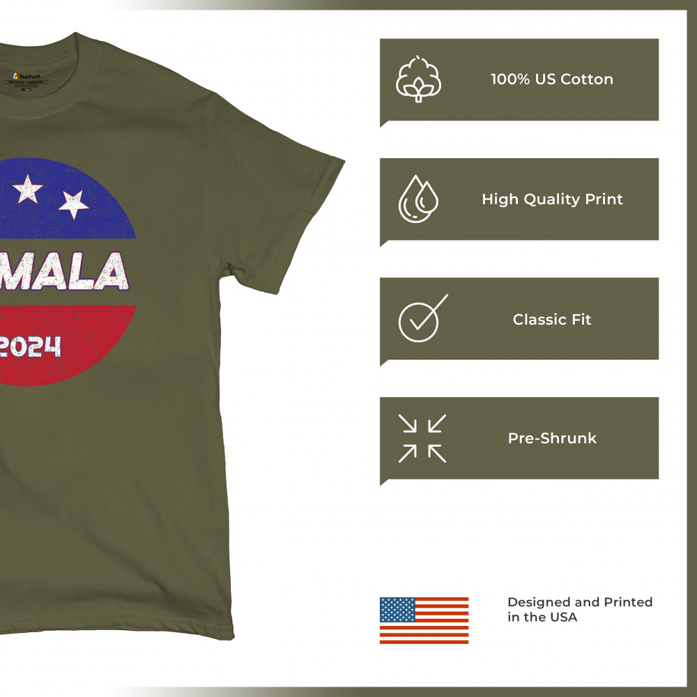 Join the movement and support Kamala Harris in the 2024 election with this premium t-shirt. Designed for anti-Trump supporters, liberals, and Democrats, this shirt showcases a striking design with the American flag and "Kamala Harris 2024" slogan. Made from top-quality materials, it ensures comfort and longevity, perfect for rallies, campaigns, or casual outings. Embrace diversity and advocate for the first female president, representing black Americans, Hispanic Americans, and the LGBTQ community. Wear this tee with pride and contribute to a positive change for America.
