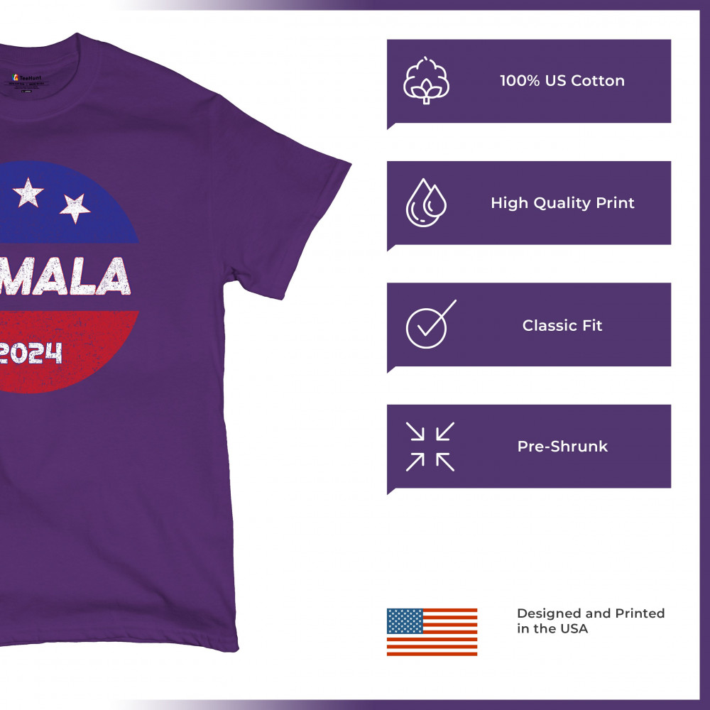 Join the movement and support Kamala Harris in the 2024 election with this premium t-shirt. Designed for anti-Trump supporters, liberals, and Democrats, this shirt showcases a striking design with the American flag and "Kamala Harris 2024" slogan. Made from top-quality materials, it ensures comfort and longevity, perfect for rallies, campaigns, or casual outings. Embrace diversity and advocate for the first female president, representing black Americans, Hispanic Americans, and the LGBTQ community. Wear this tee with pride and contribute to a positive change for America.