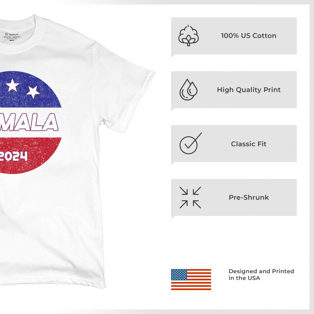 Join the movement and support Kamala Harris in the 2024 election with this premium t-shirt. Designed for anti-Trump supporters, liberals, and Democrats, this shirt showcases a striking design with the American flag and "Kamala Harris 2024" slogan. Made from top-quality materials, it ensures comfort and longevity, perfect for rallies, campaigns, or casual outings. Embrace diversity and advocate for the first female president, representing black Americans, Hispanic Americans, and the LGBTQ community. Wear this tee with pride and contribute to a positive change for America.