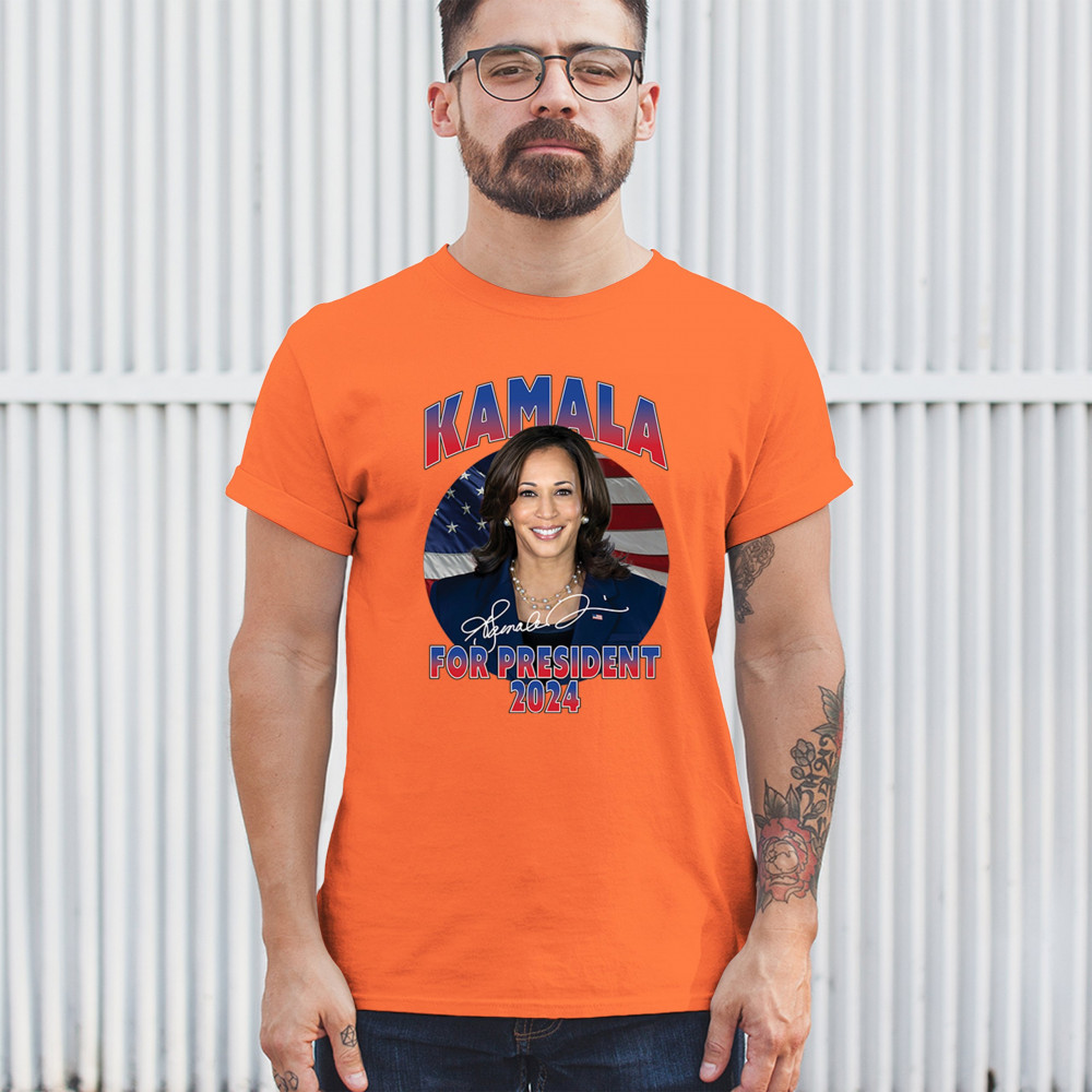 Kamala Harris's 2024 presidential campaign design captures the essence of hope and progress. Featuring a bold and vibrant graphic with her name, portrait, and the American flag, this design symbolizes the fight for liberal values, women's rights, and LGBTQ+ equality. It's perfect for supporters who want to make a statement at rallies, events, or in everyday life. Show your support for a brighter future with this compelling design.