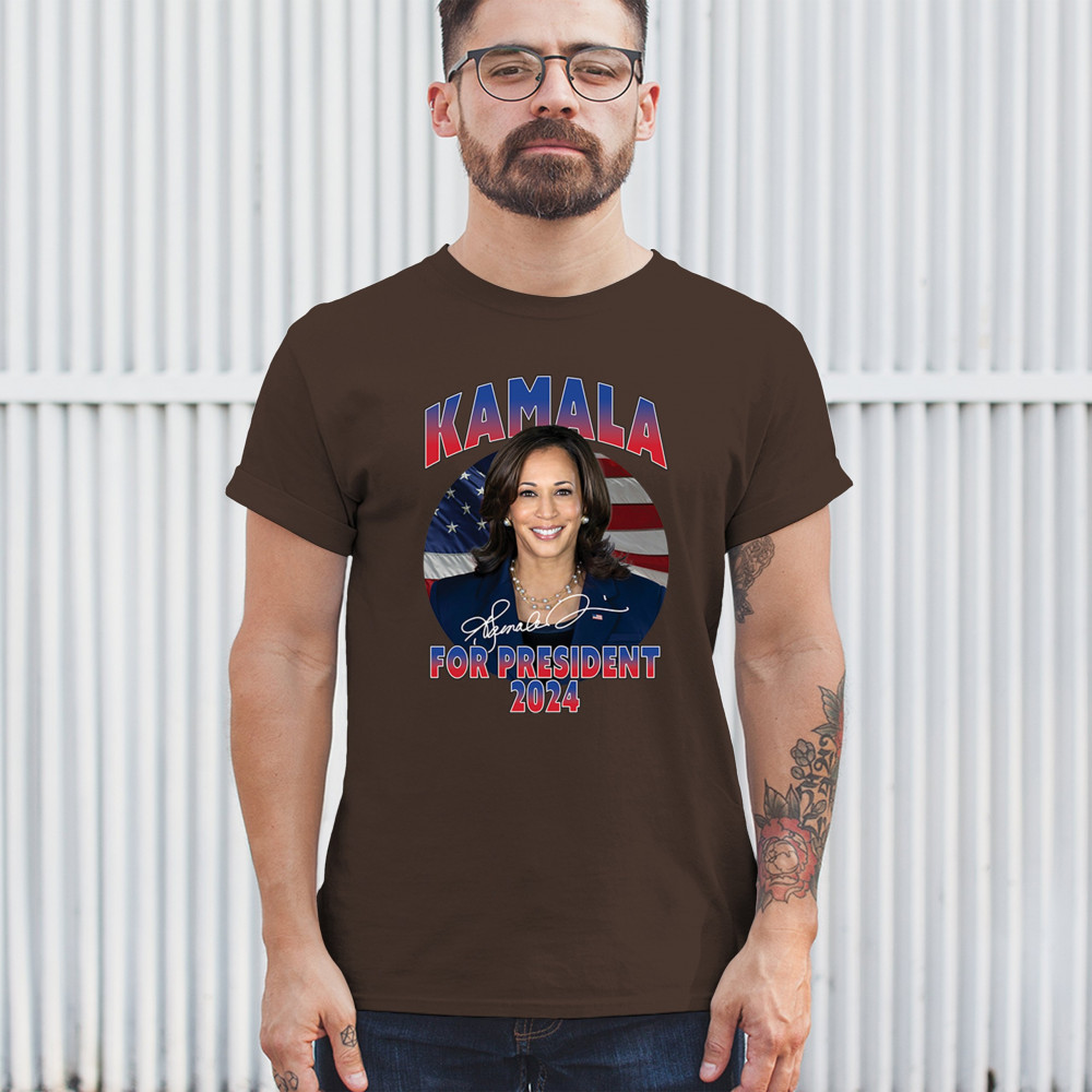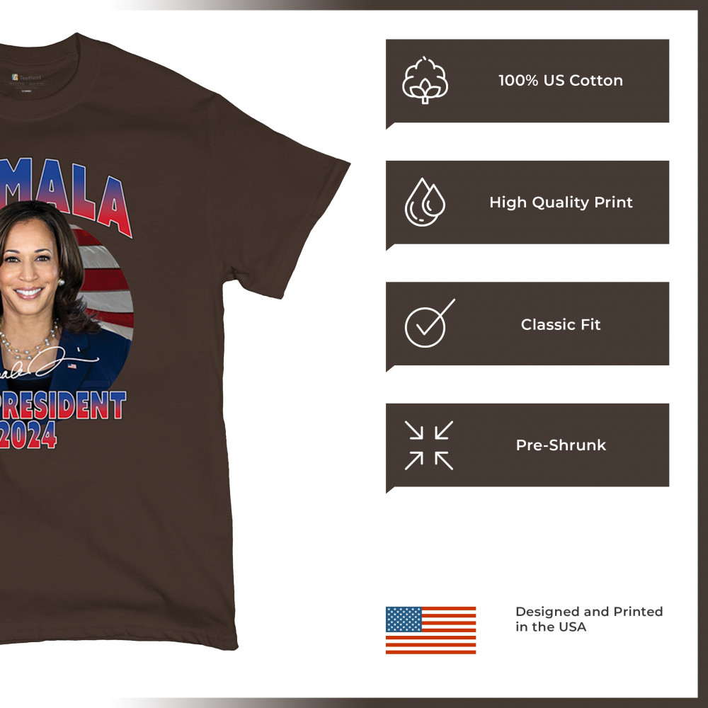 Kamala Harris's 2024 presidential campaign design captures the essence of hope and progress. Featuring a bold and vibrant graphic with her name, portrait, and the American flag, this design symbolizes the fight for liberal values, women's rights, and LGBTQ+ equality. It's perfect for supporters who want to make a statement at rallies, events, or in everyday life. Show your support for a brighter future with this compelling design.