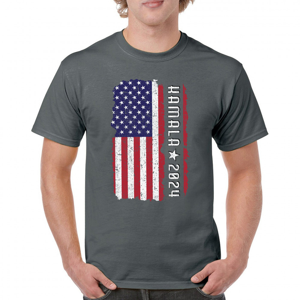 Support Kamala Harris 2024 with a bold design featuring a distressed American flag. Perfect for rallies and political events. Celebrate diversity!