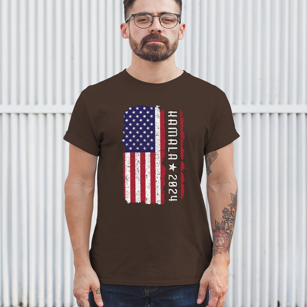 Support Kamala Harris 2024 with a bold design featuring a distressed American flag. Perfect for rallies and political events. Celebrate diversity!