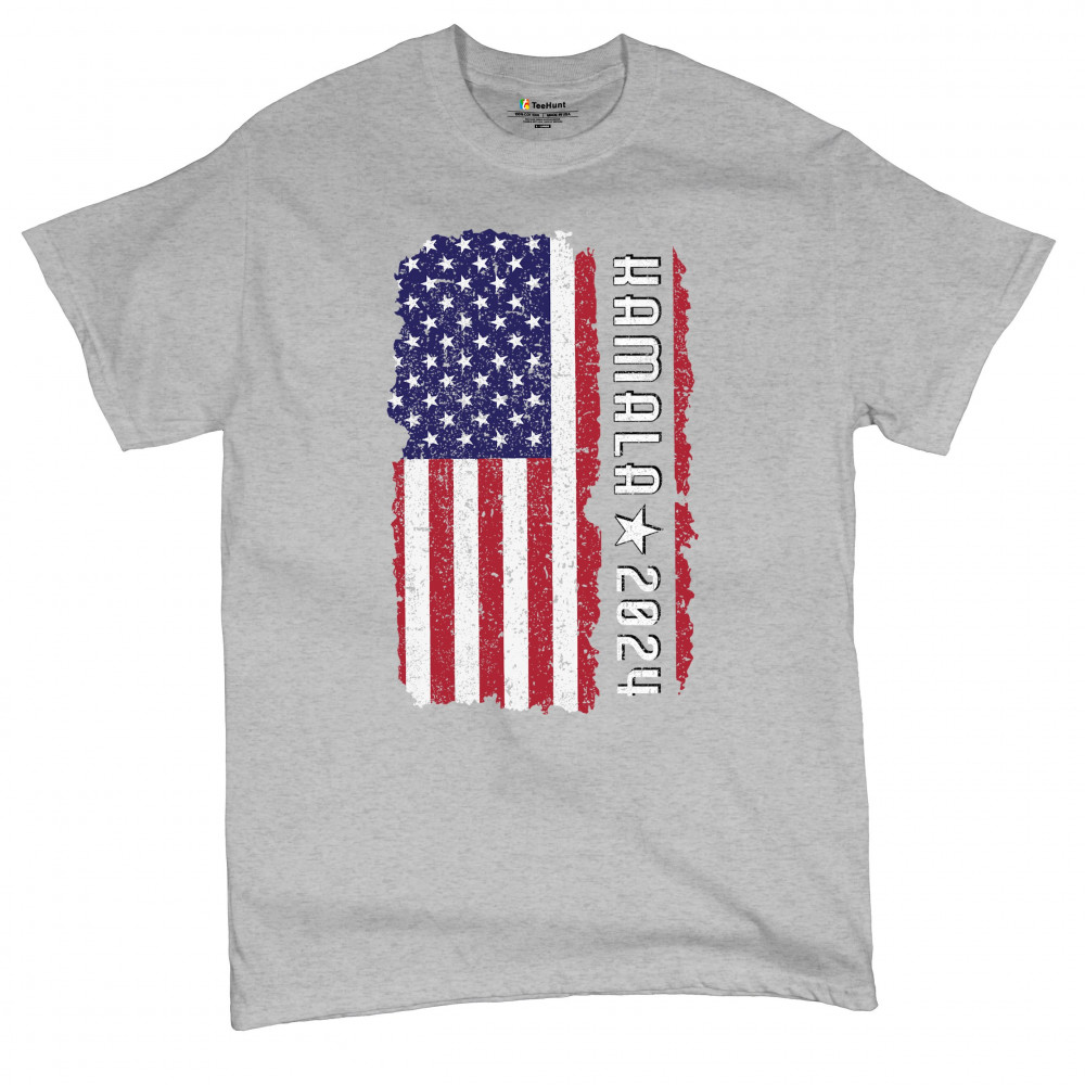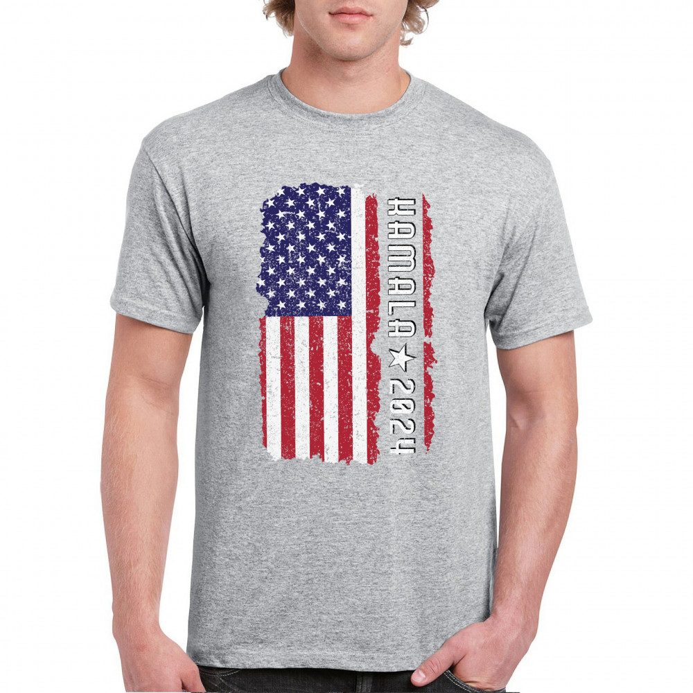 Support Kamala Harris 2024 with a bold design featuring a distressed American flag. Perfect for rallies and political events. Celebrate diversity!