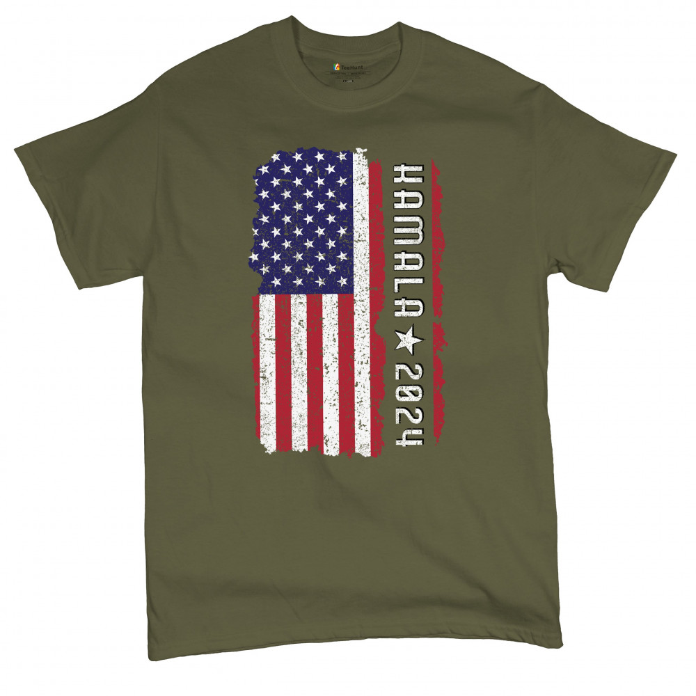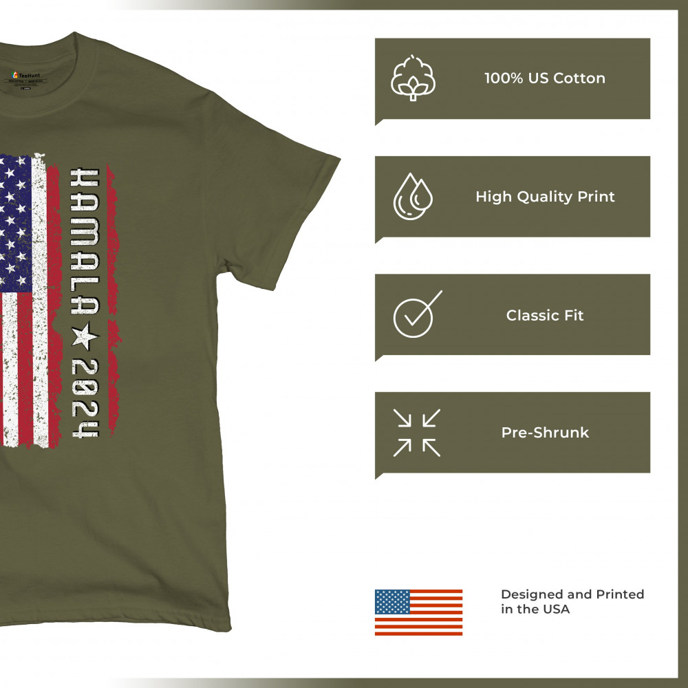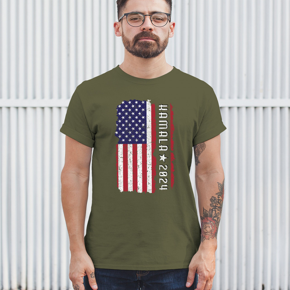 Support Kamala Harris 2024 with a bold design featuring a distressed American flag. Perfect for rallies and political events. Celebrate diversity!