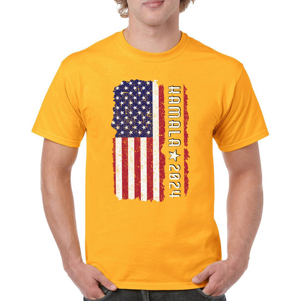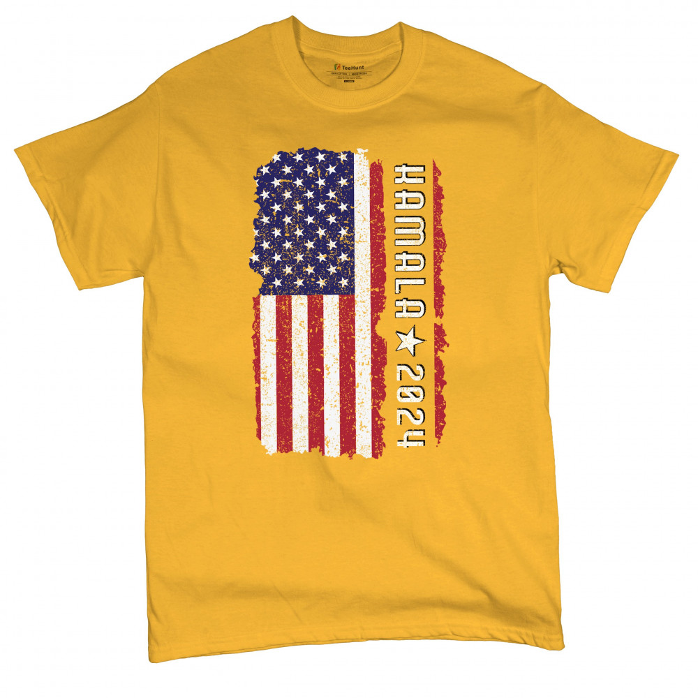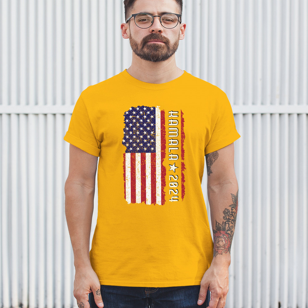 Support Kamala Harris 2024 with a bold design featuring a distressed American flag. Perfect for rallies and political events. Celebrate diversity!