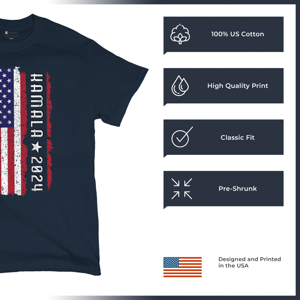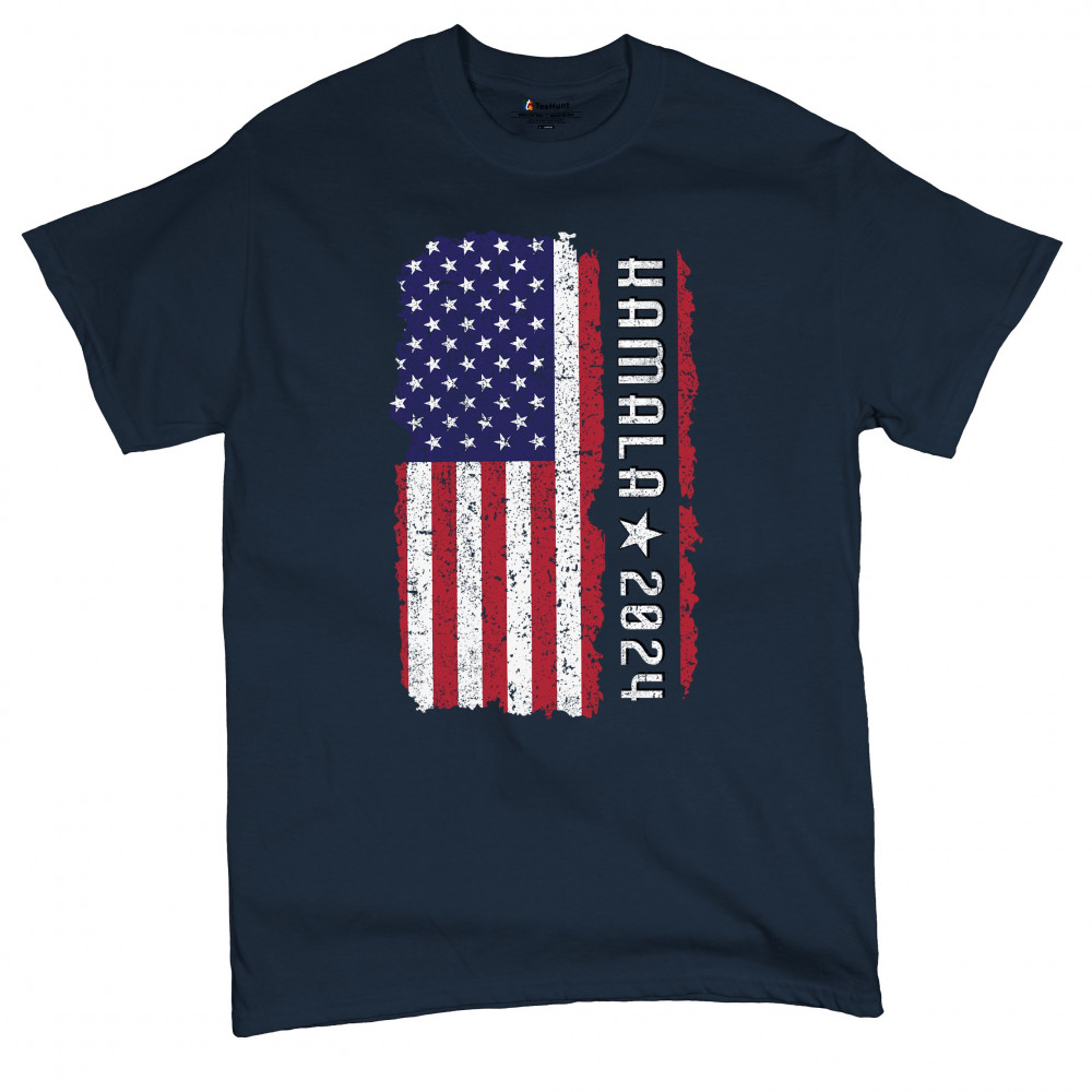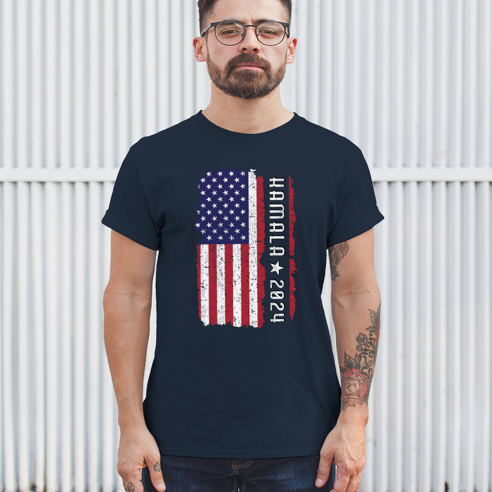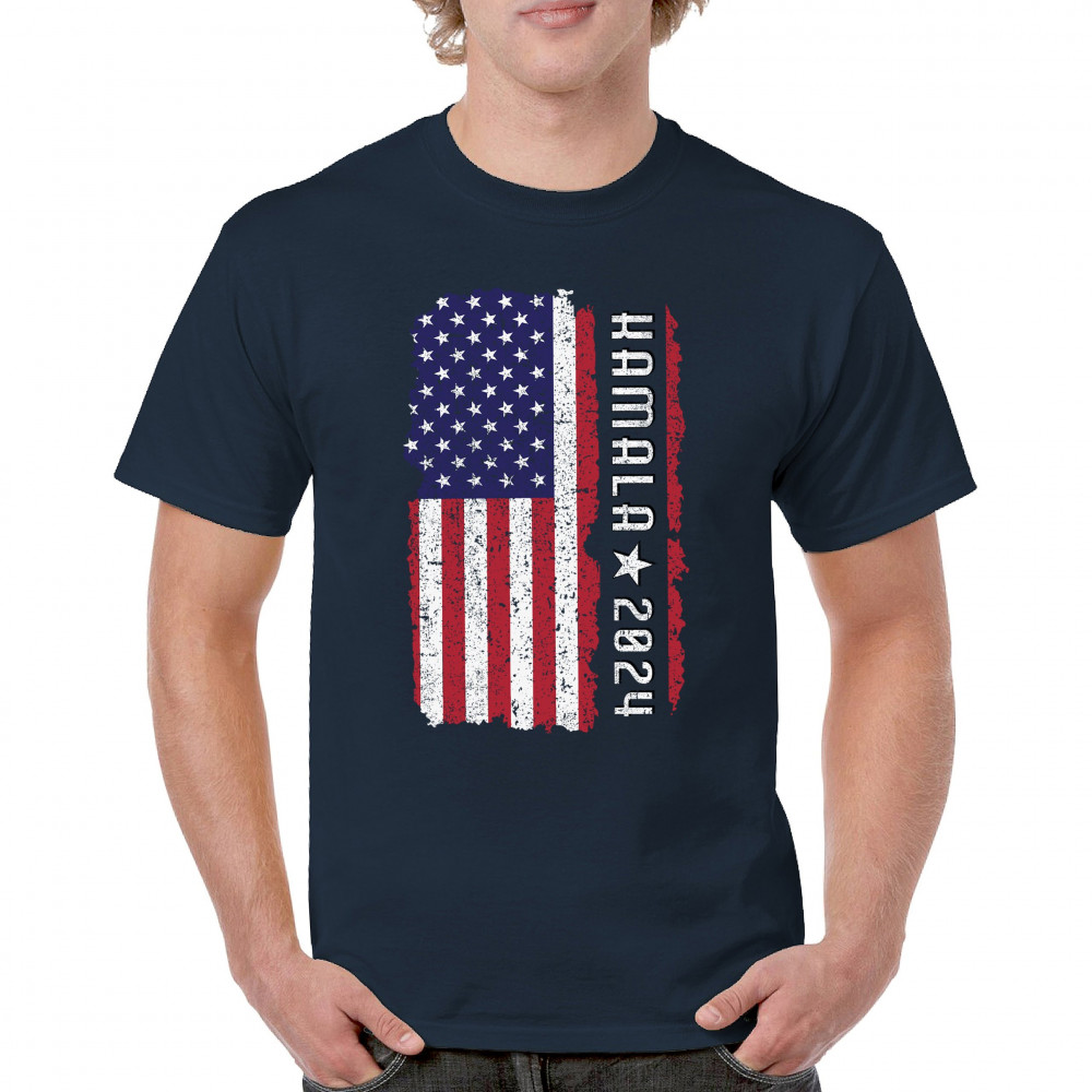 Support Kamala Harris 2024 with a bold design featuring a distressed American flag. Perfect for rallies and political events. Celebrate diversity!
