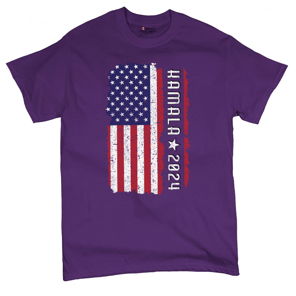 Support Kamala Harris 2024 with a bold design featuring a distressed American flag. Perfect for rallies and political events. Celebrate diversity!