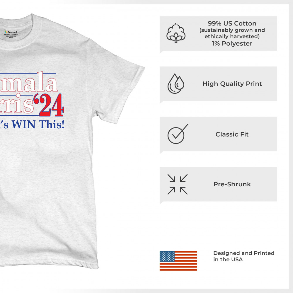 Support Kamala Harris's 2024 campaign with this bold design featuring "Let's WIN This!" Perfect for rallies, elections, and everyday wear.