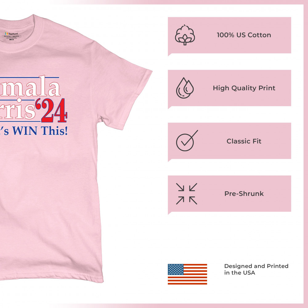 Support Kamala Harris's 2024 campaign with this bold design featuring "Let's WIN This!" Perfect for rallies, elections, and everyday wear.