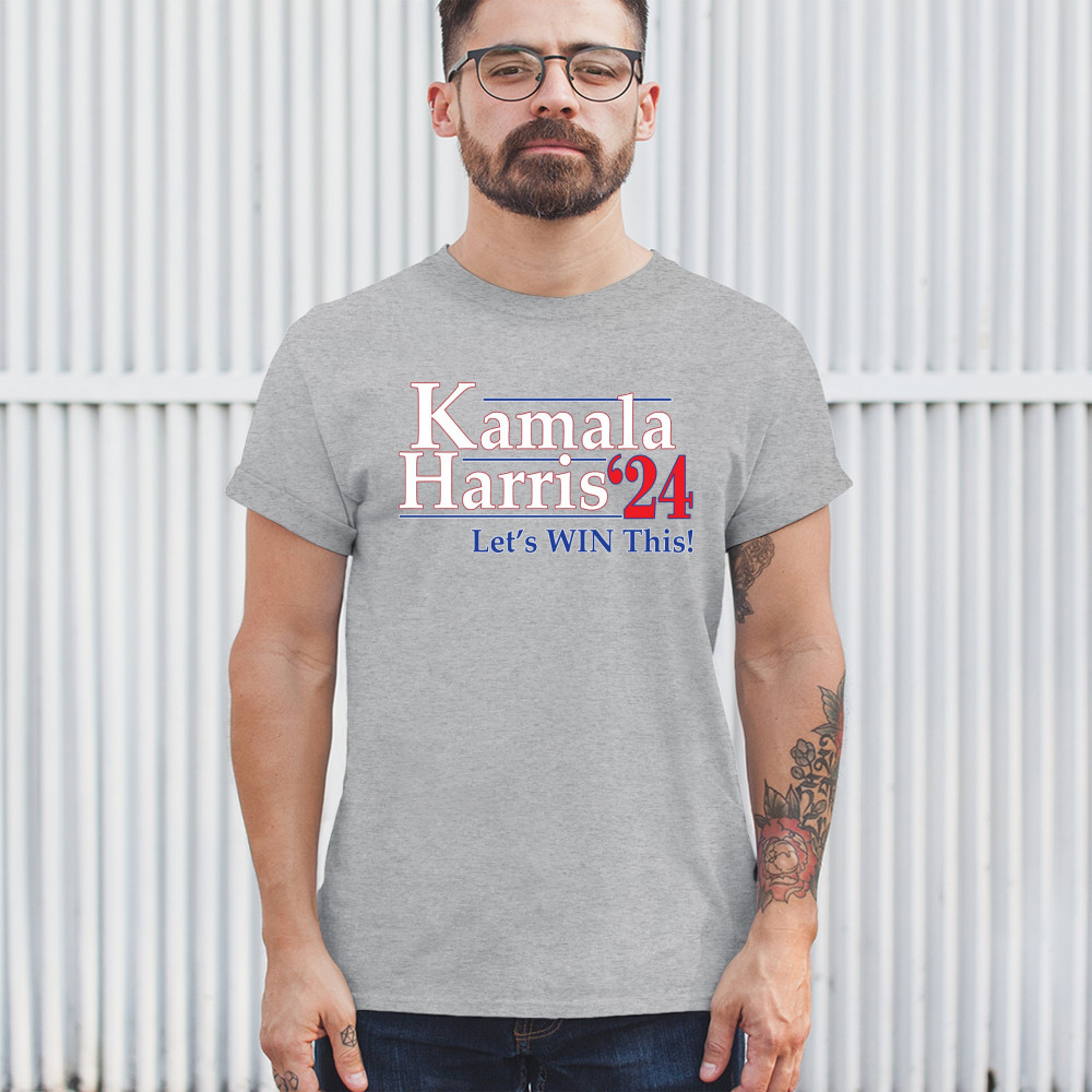Support Kamala Harris's 2024 campaign with this bold design featuring "Let's WIN This!" Perfect for rallies, elections, and everyday wear.
