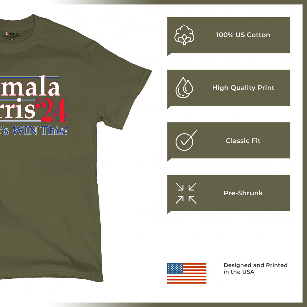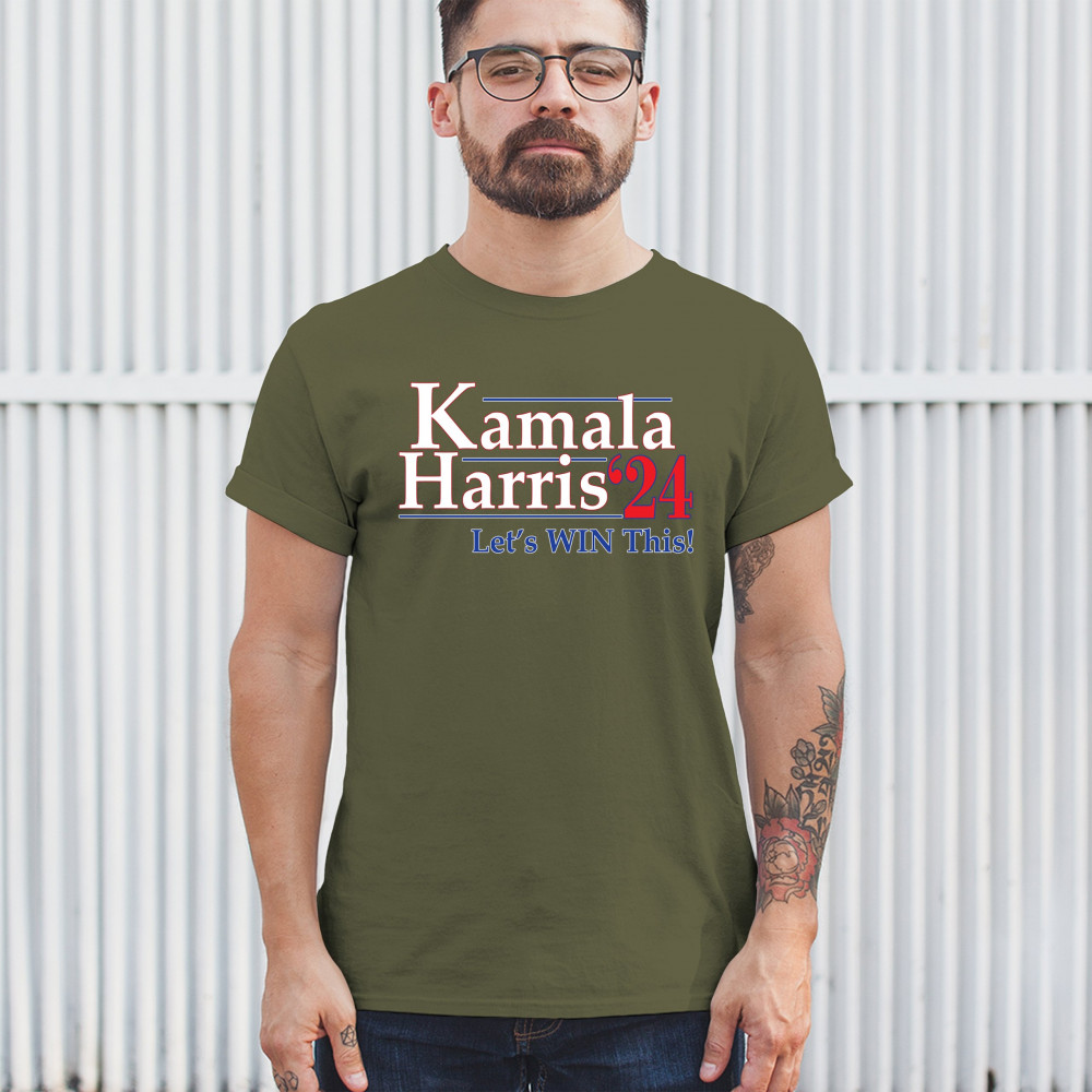 Support Kamala Harris's 2024 campaign with this bold design featuring "Let's WIN This!" Perfect for rallies, elections, and everyday wear.