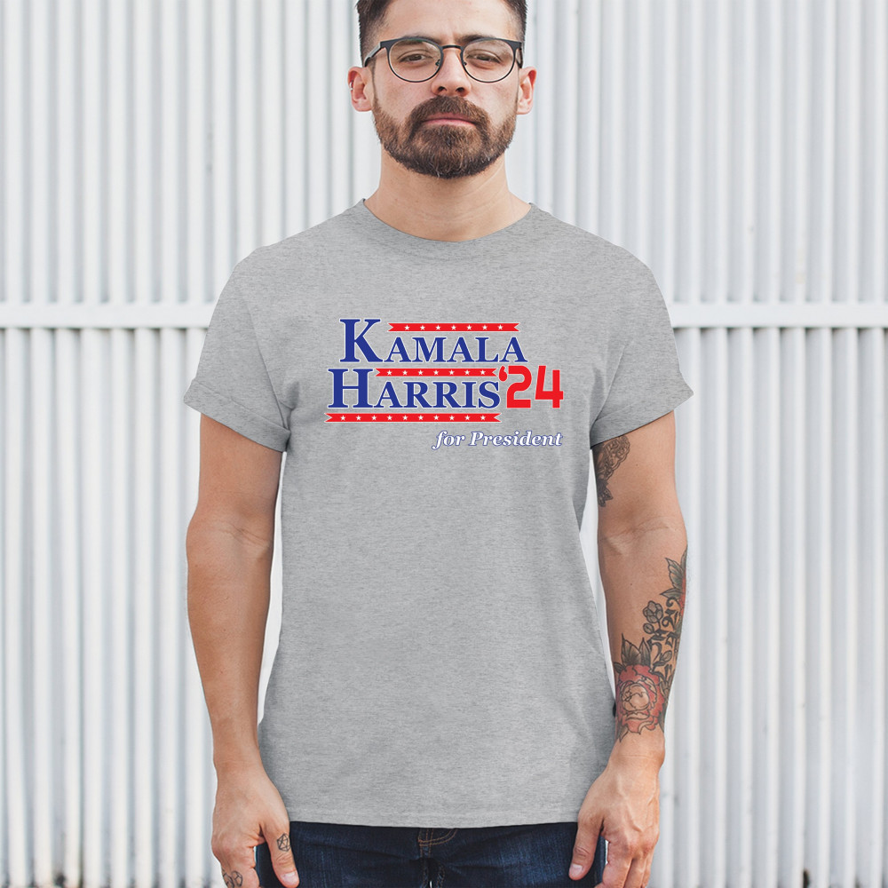 Celebrate your support for Kamala Harris with this striking design. Featuring "Kamala Harris '24" in patriotic red, white, and blue, this piece is perfect for anyone dedicated to the 2024 presidential campaign. Whether you're attending a rally, a campaign event, or simply want to show your support, this design is ideal. Stand with Kamala Harris and advocate for liberal, democratic values, and the empowerment of minority communities. Perfect for supporters of black Americans, Hispanic Americans, and the LGBTQ community.