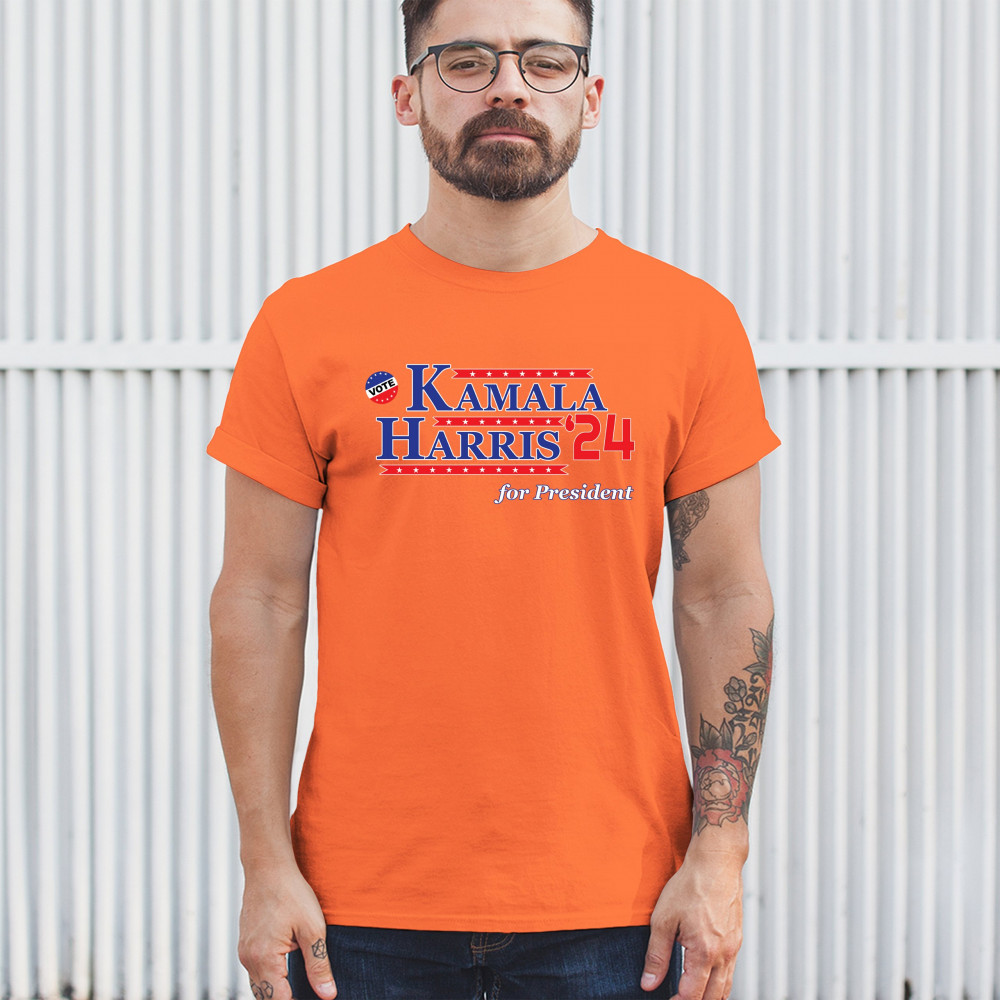 Support Kamala Harris for President in 2024 with this bold, patriotic design. Perfect for liberals, Democrats, and minority communities.
