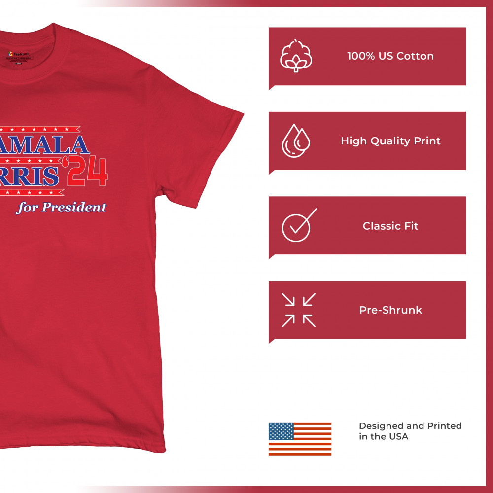 Support Kamala Harris for President in 2024 with this bold, patriotic design. Perfect for liberals, Democrats, and minority communities.