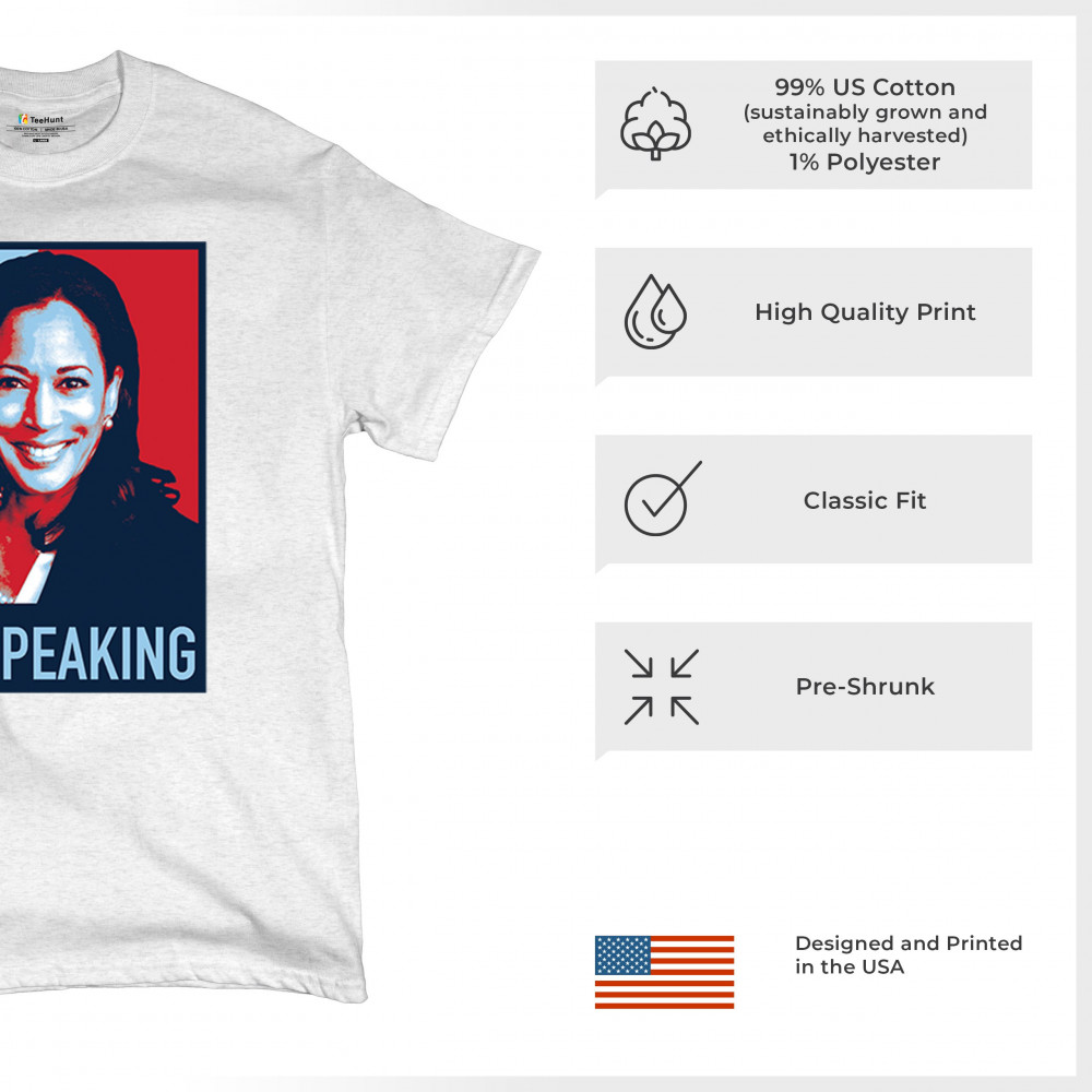 Featuring the iconic "I'm Speaking" image of Kamala Harris, this design is perfect for showing your support for the Harris-Walz 2024 campaign. The red, white, and blue colors make a bold statement, celebrating the values of equality and justice. With a focus on liberal values, including LGBTQ+ rights, women's empowerment, and progressive policies, this design is ideal for rallies or everyday wear. Stand up for what you believe in and wear this design with pride. "Let's Win This"