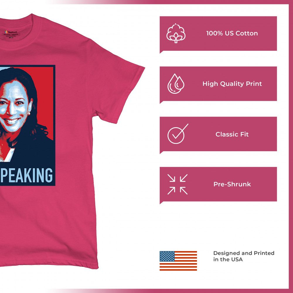 Featuring the iconic "I'm Speaking" image of Kamala Harris, this design is perfect for showing your support for the Harris-Walz 2024 campaign. The red, white, and blue colors make a bold statement, celebrating the values of equality and justice. With a focus on liberal values, including LGBTQ+ rights, women's empowerment, and progressive policies, this design is ideal for rallies or everyday wear. Stand up for what you believe in and wear this design with pride. "Let's Win This"