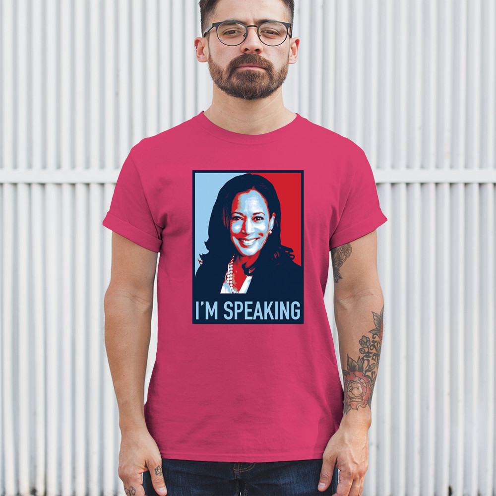 Show your support for Kamala Harris and Tim Walz with this "I'm Speaking" design. A bold statement celebrating liberal values and progressive policies. "Let's Win This"