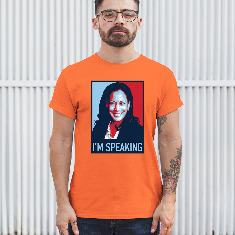 Show your support for Kamala Harris and Tim Walz with this "I'm Speaking" design. A bold statement celebrating liberal values and progressive policies. "Let's Win This"
