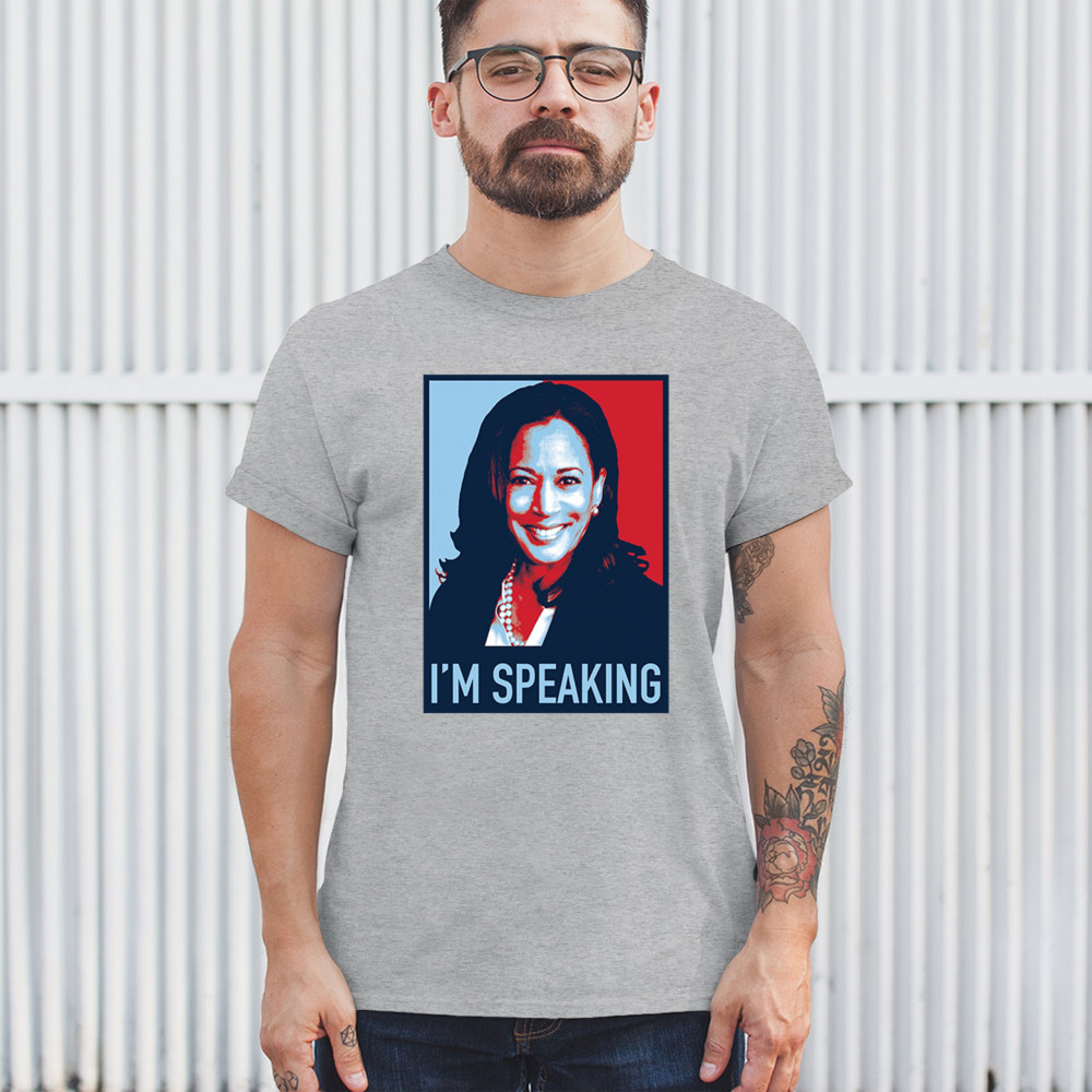 Show your support for Kamala Harris and Tim Walz with this "I'm Speaking" design. A bold statement celebrating liberal values and progressive policies. "Let's Win This"