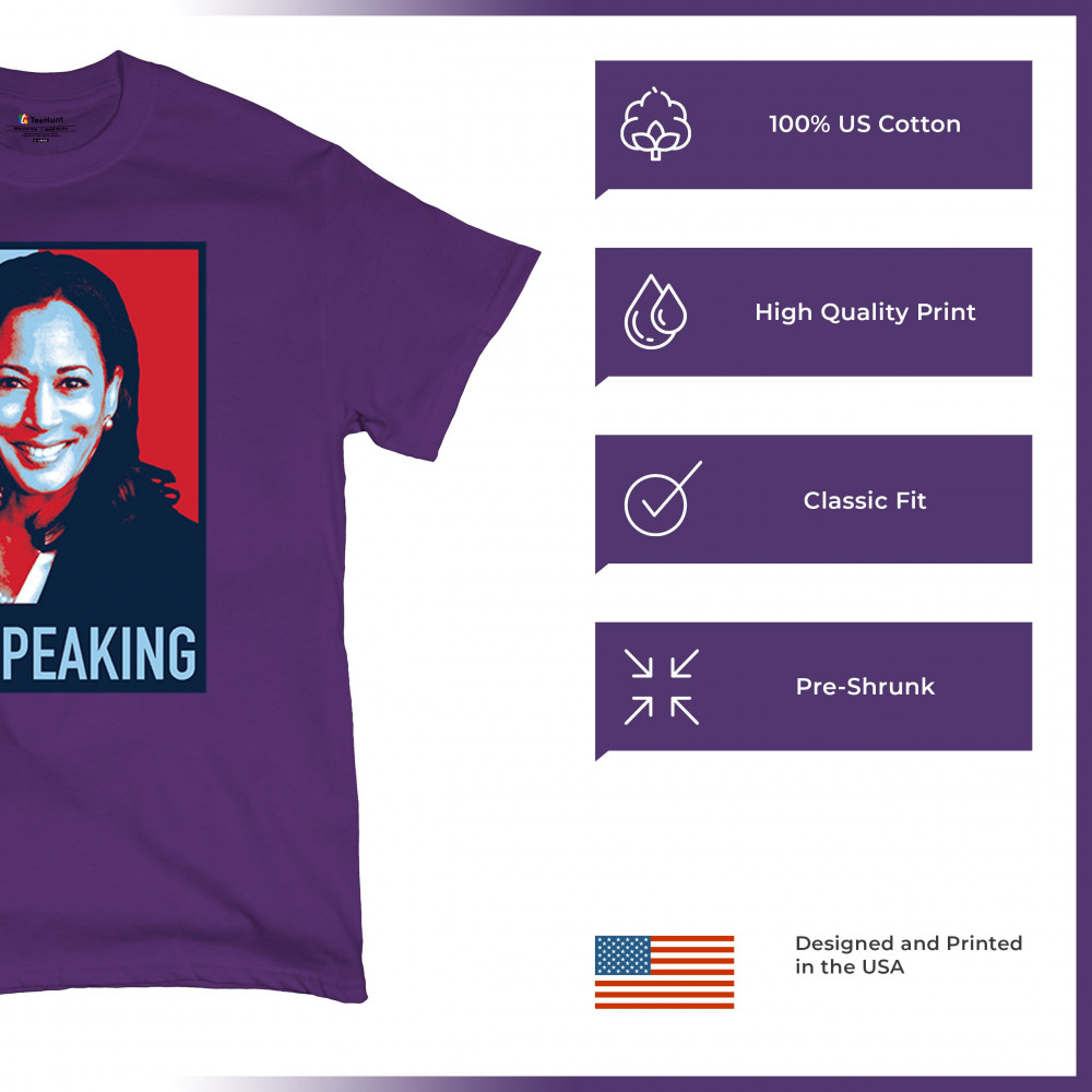 Featuring the iconic "I'm Speaking" image of Kamala Harris, this design is perfect for showing your support for the Harris-Walz 2024 campaign. The red, white, and blue colors make a bold statement, celebrating the values of equality and justice. With a focus on liberal values, including LGBTQ+ rights, women's empowerment, and progressive policies, this design is ideal for rallies or everyday wear. Stand up for what you believe in and wear this design with pride. "Let's Win This"