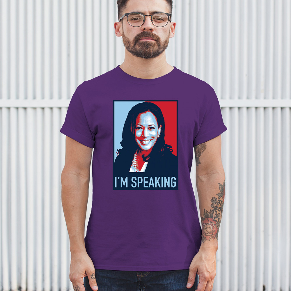 Show your support for Kamala Harris and Tim Walz with this "I'm Speaking" design. A bold statement celebrating liberal values and progressive policies. "Let's Win This"