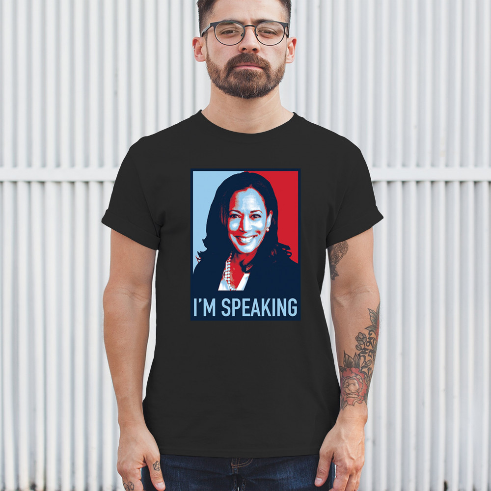KAMALA HARRIS I'M SPEAKING 2024 t-shirt president 47 vote blue usa men's tee black