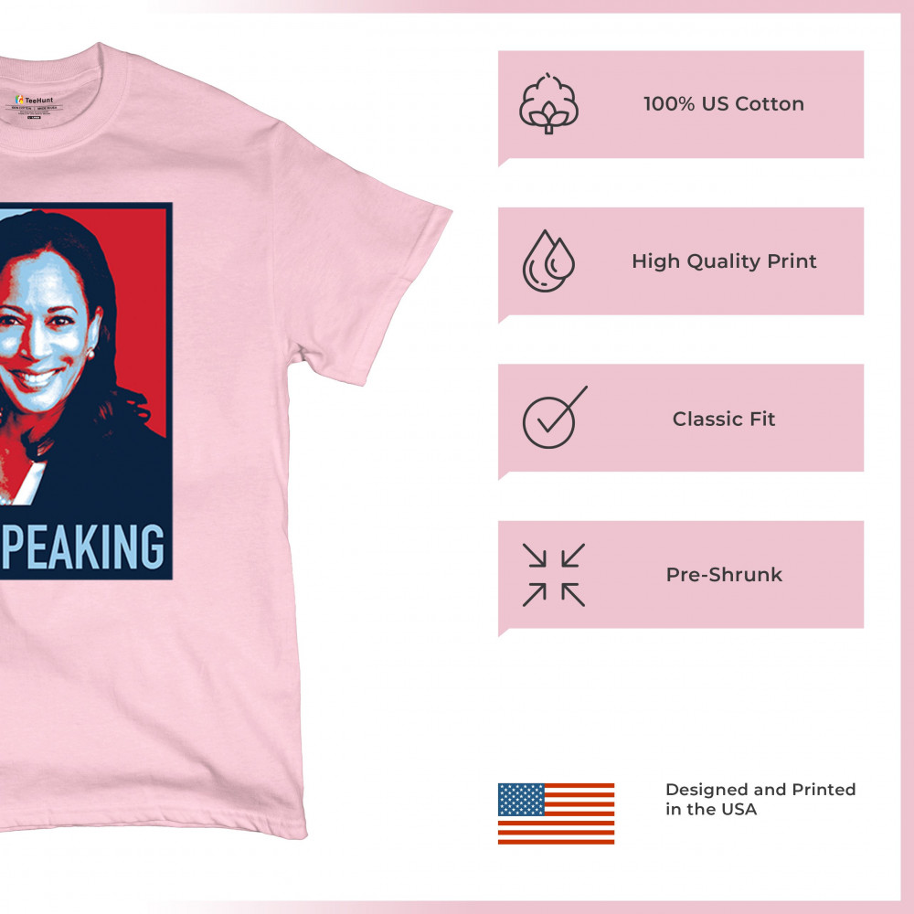 Featuring the iconic "I'm Speaking" image of Kamala Harris, this design is perfect for showing your support for the Harris-Walz 2024 campaign. The red, white, and blue colors make a bold statement, celebrating the values of equality and justice. With a focus on liberal values, including LGBTQ+ rights, women's empowerment, and progressive policies, this design is ideal for rallies or everyday wear. Stand up for what you believe in and wear this design with pride. "Let's Win This"