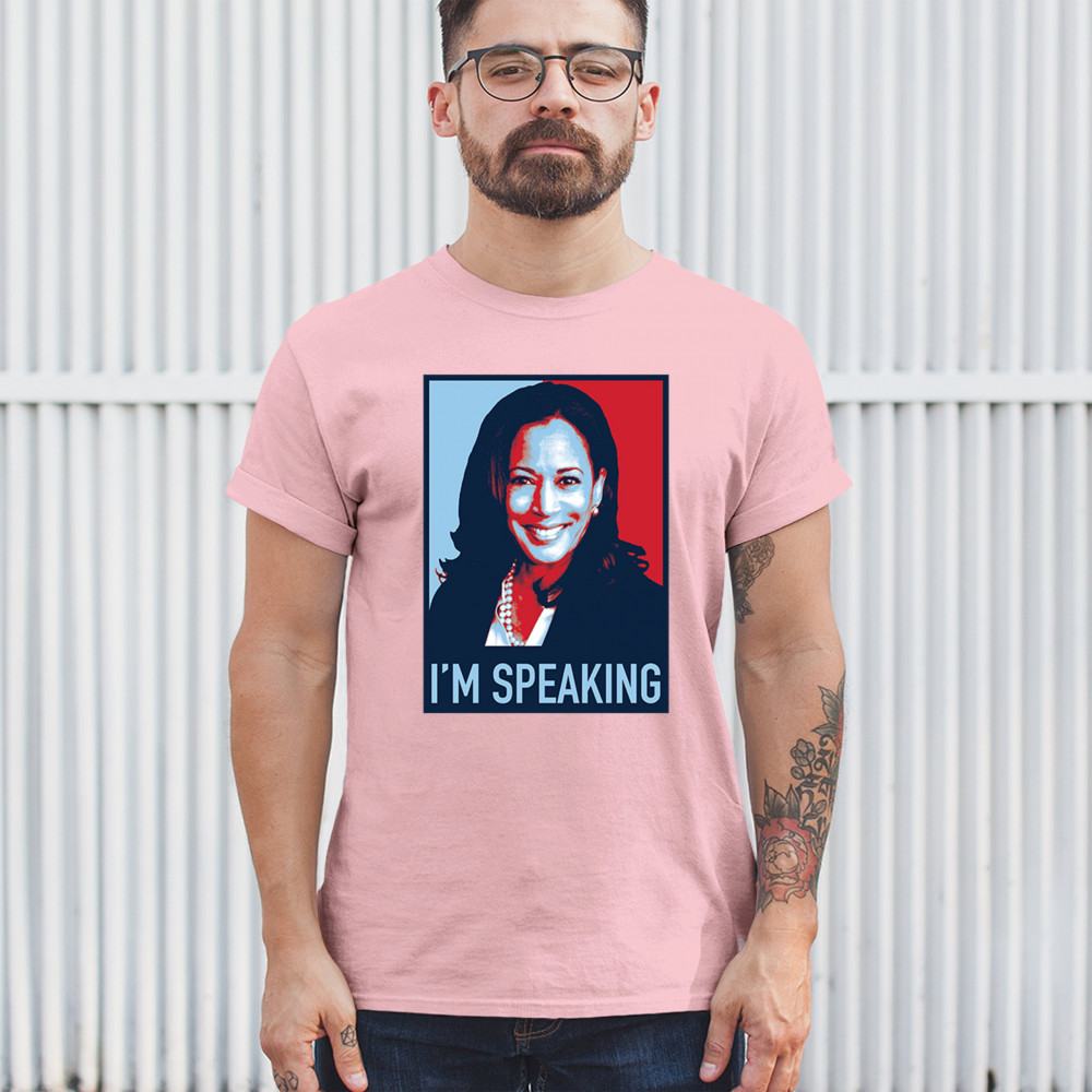 Show your support for Kamala Harris and Tim Walz with this "I'm Speaking" design. A bold statement celebrating liberal values and progressive policies. "Let's Win This"