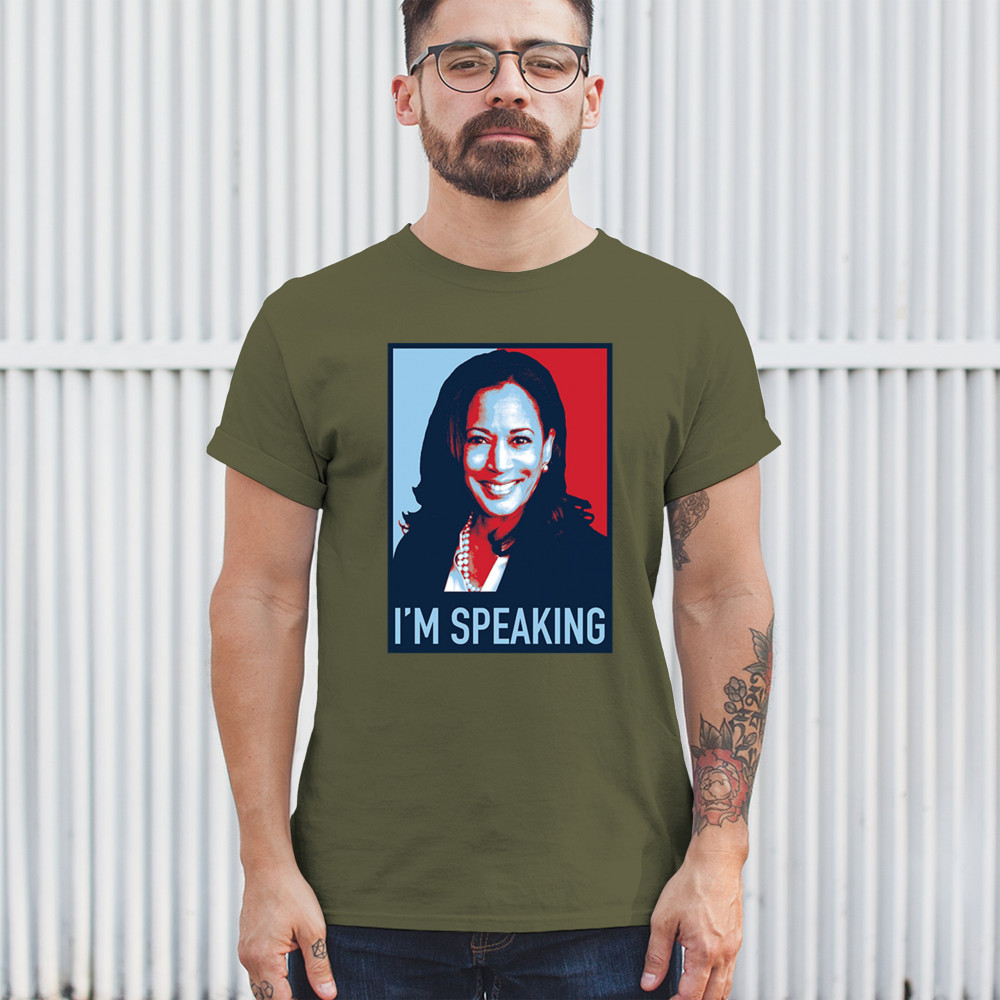 Show your support for Kamala Harris and Tim Walz with this "I'm Speaking" design. A bold statement celebrating liberal values and progressive policies. "Let's Win This"