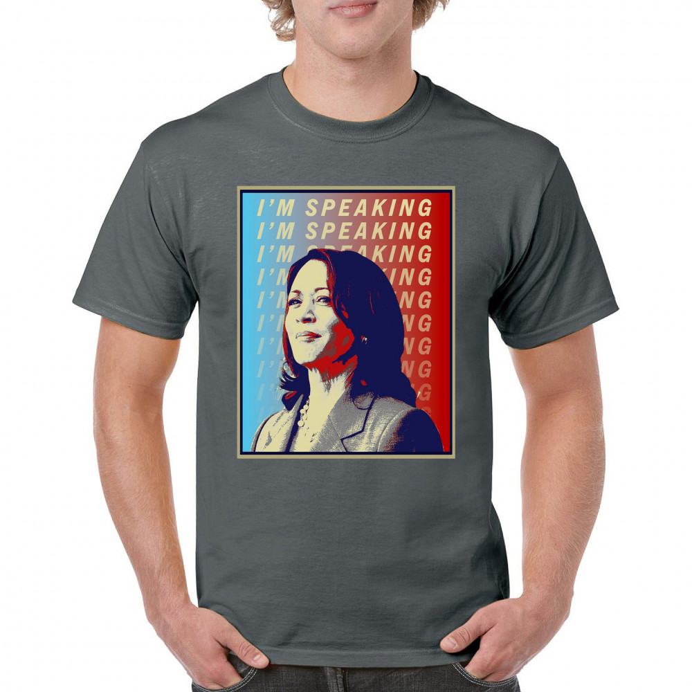 Support Kamala Harris with this bold and inspiring design. "I'M SPEAKING" echoes her powerful voice in the political arena, making it perfect for anti-Trump supporters, liberals, and Democrats. Crafted from durable materials, this design is comfortable for any event, from rallies to casual outings. Celebrate diversity and the historic candidacy of the potential first female president, resonating with black Americans, Hispanic Americans, LGBTQ supporters, and other minorities. Make a statement of hope and progress with this unique design.