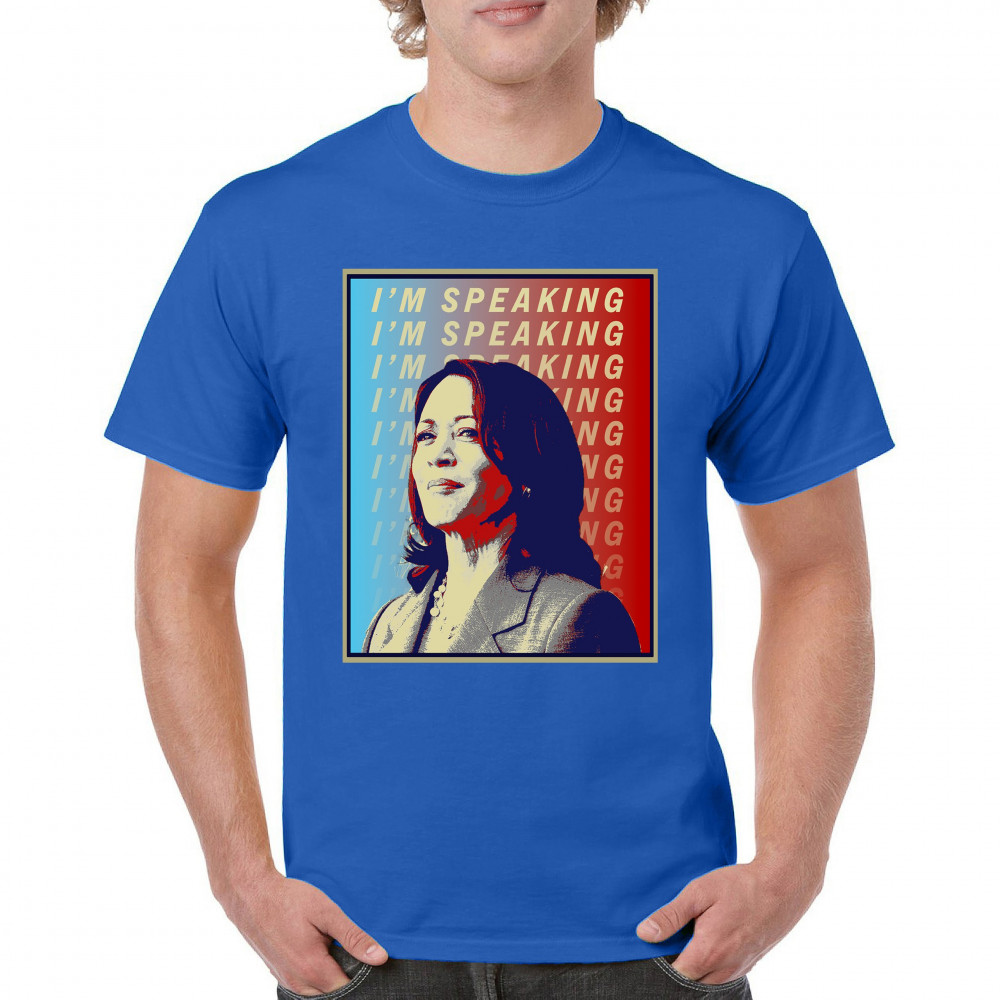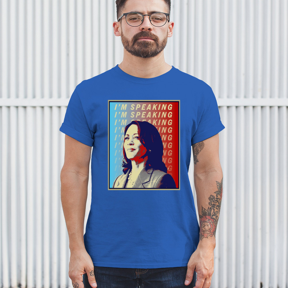Support Kamala Harris with this bold and inspiring design. "I'M SPEAKING" echoes her powerful voice in the political arena, making it perfect for anti-Trump supporters, liberals, and Democrats. Crafted from durable materials, this design is comfortable for any event, from rallies to casual outings. Celebrate diversity and the historic candidacy of the potential first female president, resonating with black Americans, Hispanic Americans, LGBTQ supporters, and other minorities. Make a statement of hope and progress with this unique design.