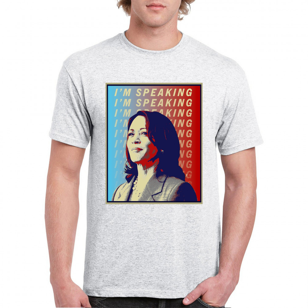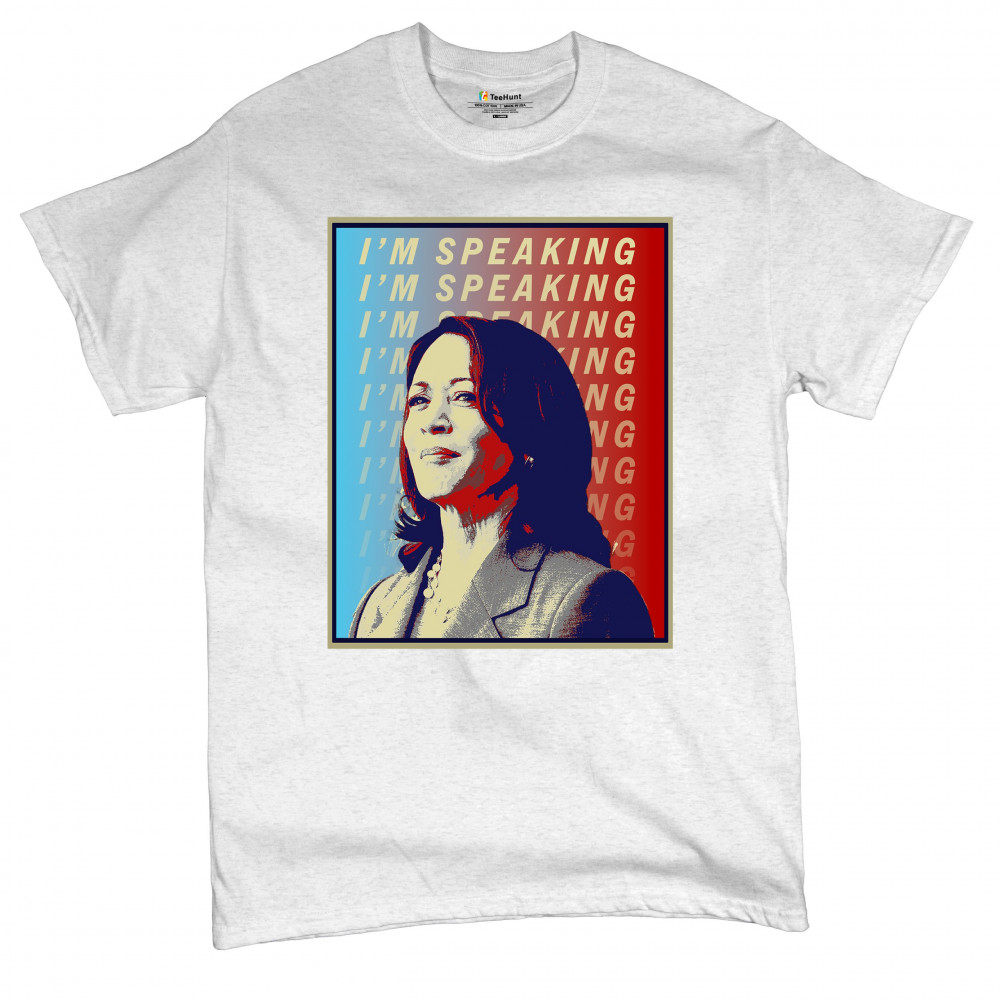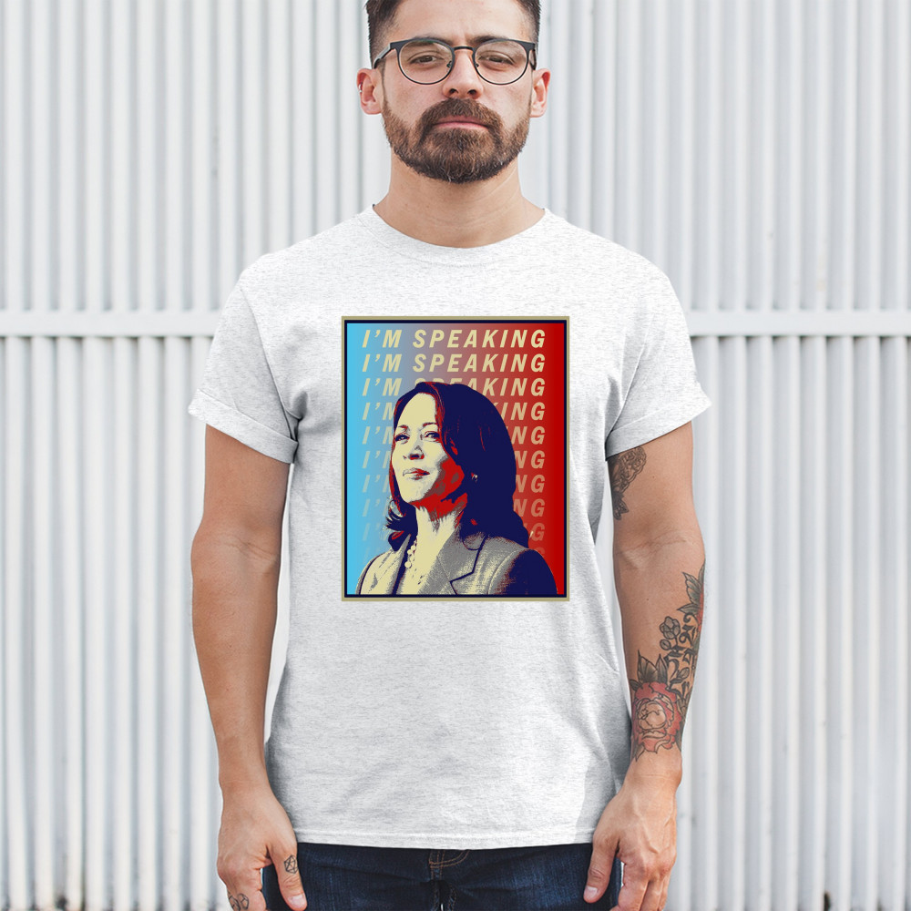 Support Kamala Harris with this bold and inspiring design. "I'M SPEAKING" echoes her powerful voice in the political arena, making it perfect for anti-Trump supporters, liberals, and Democrats. Crafted from durable materials, this design is comfortable for any event, from rallies to casual outings. Celebrate diversity and the historic candidacy of the potential first female president, resonating with black Americans, Hispanic Americans, LGBTQ supporters, and other minorities. Make a statement of hope and progress with this unique design.