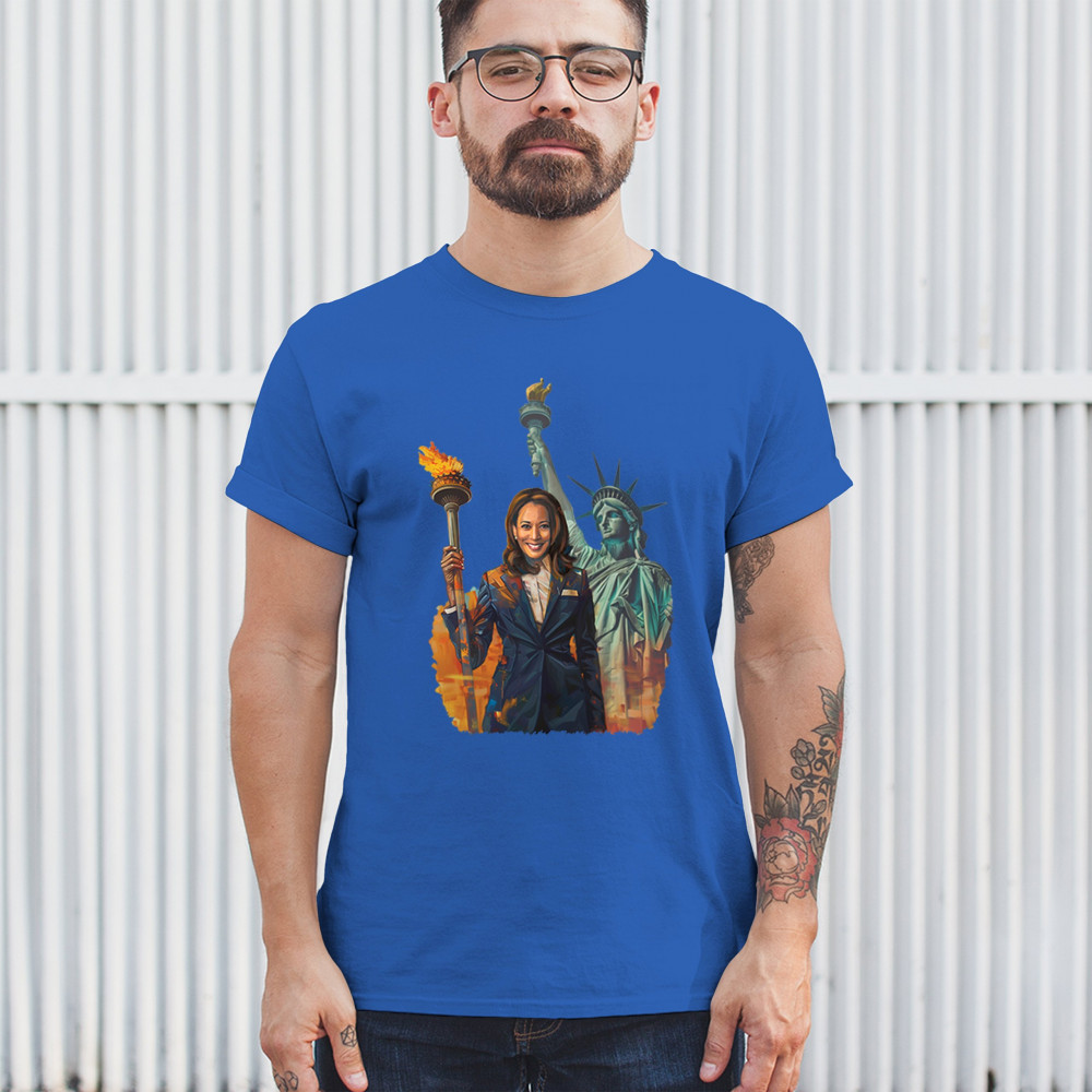 Show your support for Harris-Walz 2024 with this bold design featuring Kamala Harris and the Statue of Liberty. Stand for justice, equality, and a brighter future.