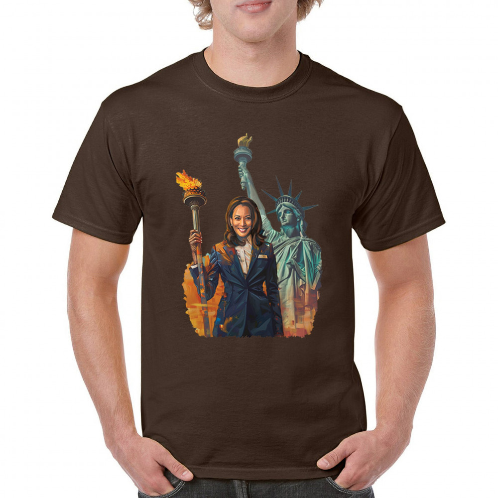 This powerful design featuring Kamala Harris and the Statue of Liberty symbolizes the fight for justice, equality, and a brighter future in the Harris-Walz 2024 campaign. Perfect for rallies, events, and daily wear, this design speaks to supporters of women's rights and liberal values. Show your commitment to a better America with this striking image. Wear it with pride and be part of the movement.