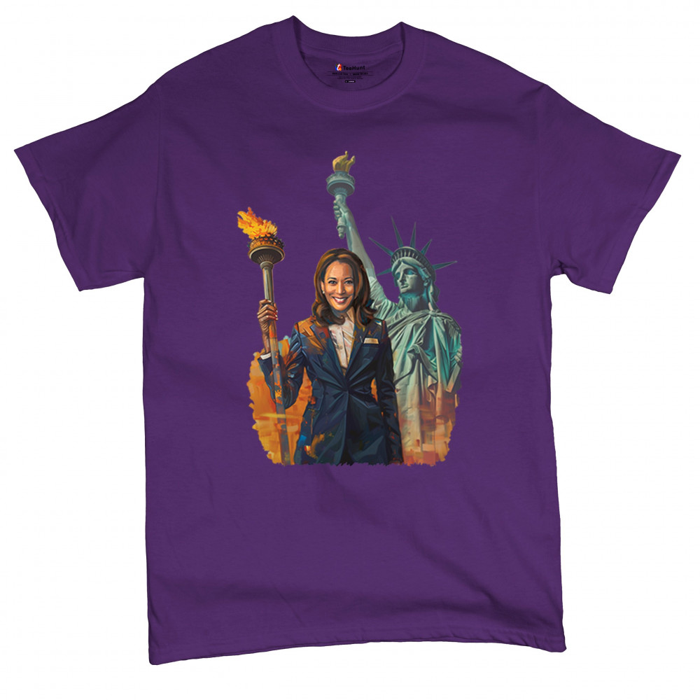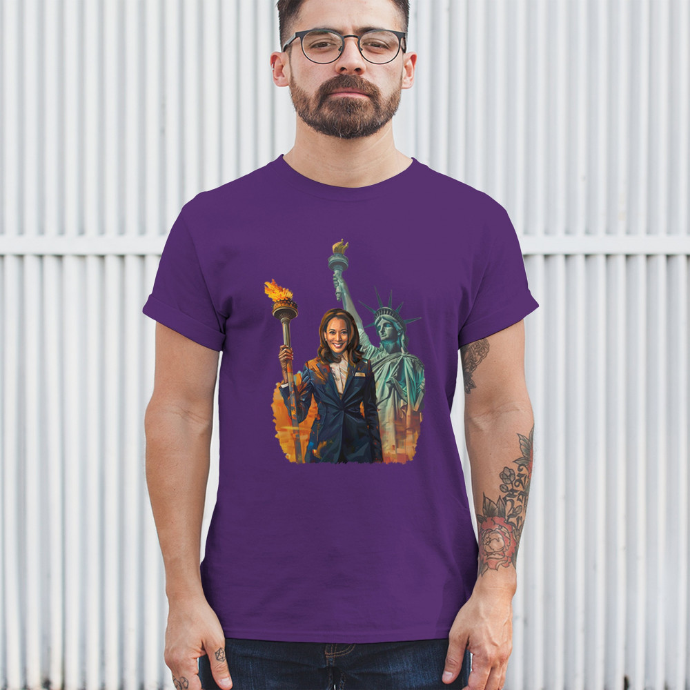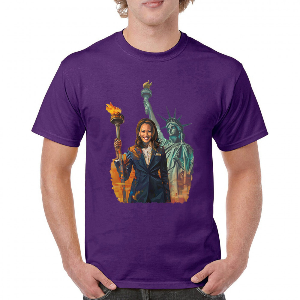 Show your support for Harris-Walz 2024 with this bold design featuring Kamala Harris and the Statue of Liberty. Stand for justice, equality, and a brighter future.
