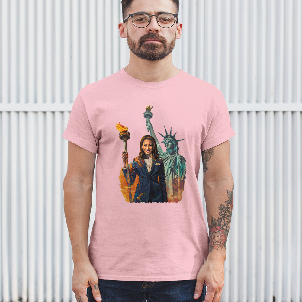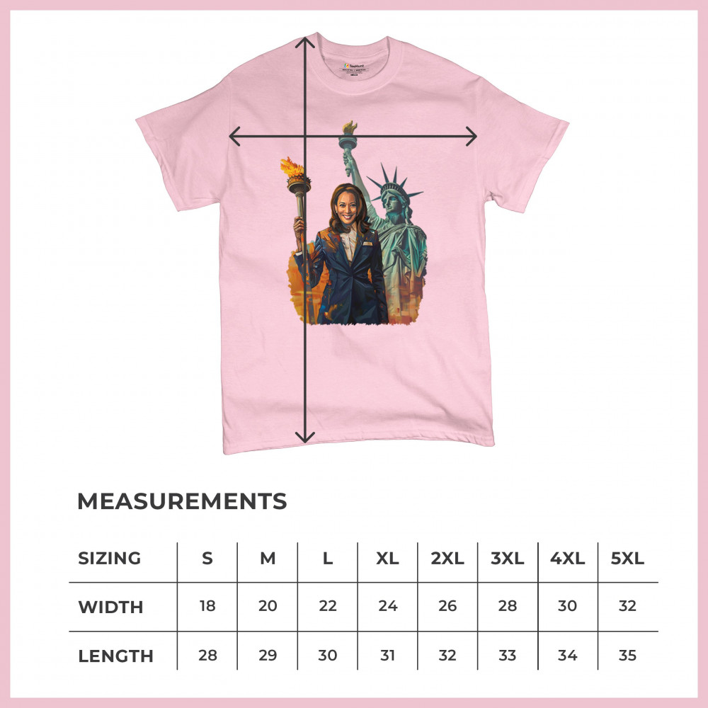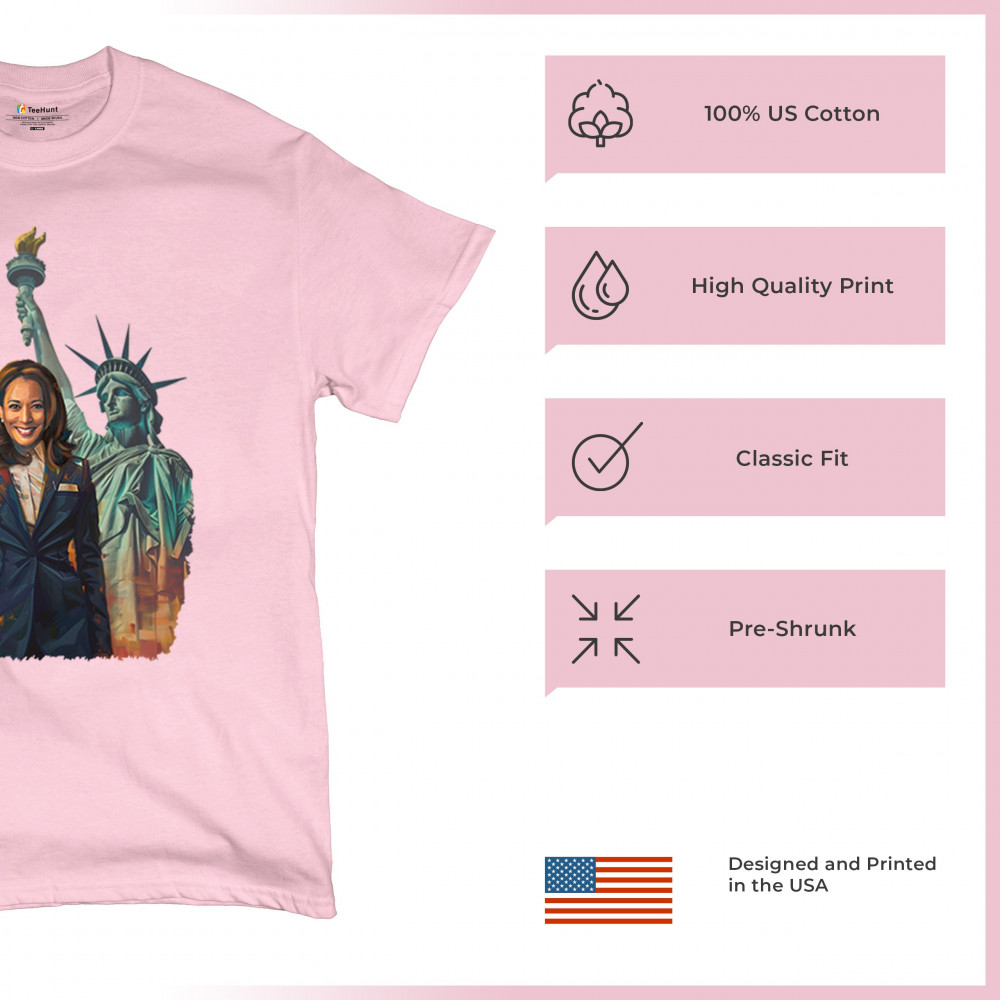 Show your support for Harris-Walz 2024 with this bold design featuring Kamala Harris and the Statue of Liberty. Stand for justice, equality, and a brighter future.