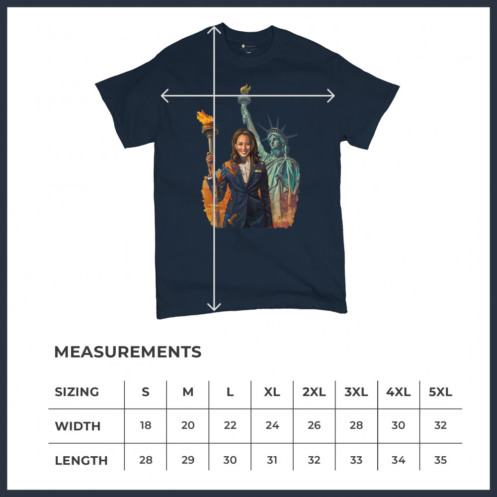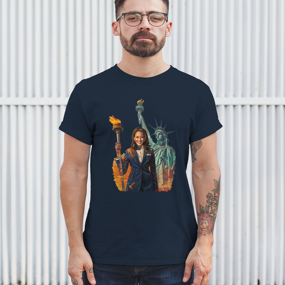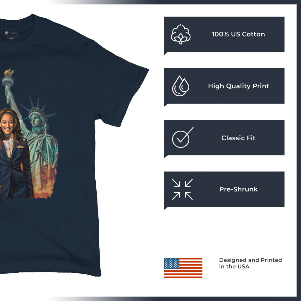 Show your support for Harris-Walz 2024 with this bold design featuring Kamala Harris and the Statue of Liberty. Stand for justice, equality, and a brighter future.
