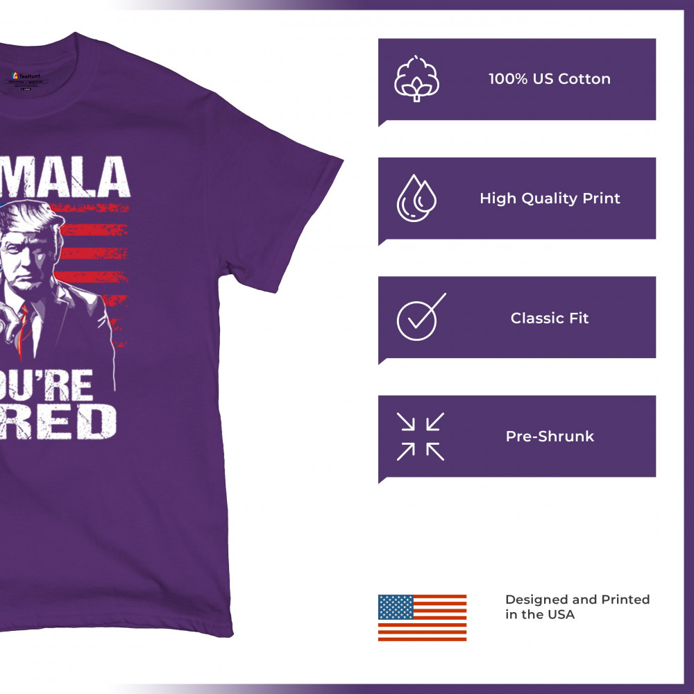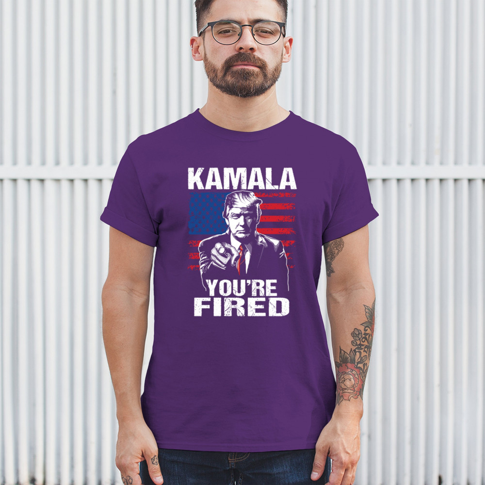 Bold "Kamala, You’re Fired" design for Trump supporters. Celebrate Republican values, America First, and the Red Wave with this patriotic statement.